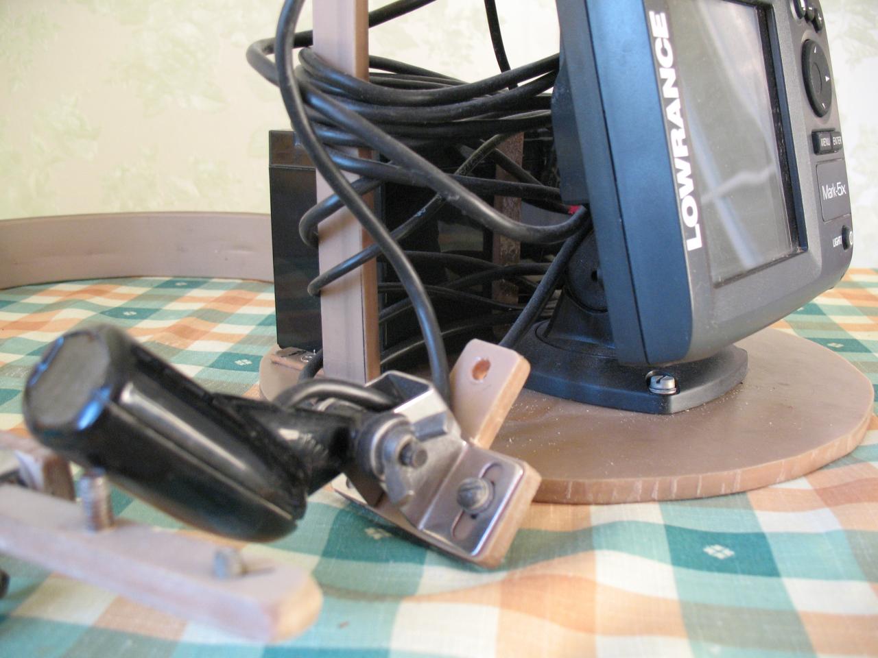 Может кому будет интересно. Вот сваял для гребной лодки и лодки с электромотором с подвесным транцем. Мне нравиться, довольно удобно при транспортировке и в лодке. Провода отматываются сколько надо, нигде не болтаются. Идеи подсмотрены и переработоны на этом форуме и у производителя. Материал-винипласт 8мм. Резался электролобзиком, гнулся при помощи промышленного электрофена. Под винты в винипласте нарезалась резьба. Регулировка длины держателя датчика сделана из мебельного держателя стекла (продается в киосках, торгующих мебельной фурнитурой)