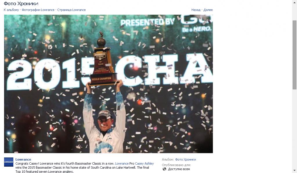 • Профессионалы выбирают Lowrance и с большим преимуществом выигрывают чемпионат Bassmaster 2015 г.