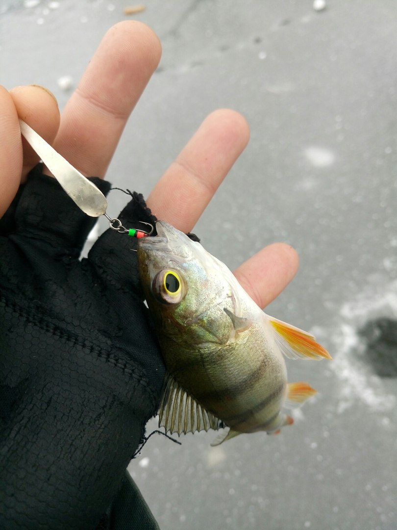 Тестировал блесны, занимался ерундой. Сработала абсолютно забытая в прошлом сезоне трехгранка, на которую позарились пара окунишек.