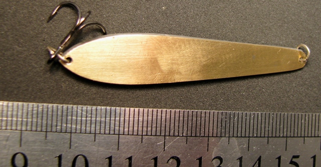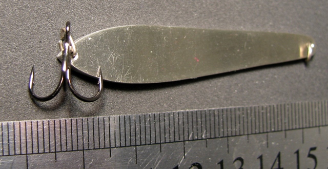 А я вот, все вокруг темы "сундук" брожу... вчерась сделал две блесенки "Рожковскую" и вот в такуюпробовал по этой фото сделать. кажись троху перемудрил с размером, но игра есть (уходит в сторону с осыпью, при возвращении в точку некоторое время вращается вокруг оси, или гвоздит). По размеру блесенки около 7 см.