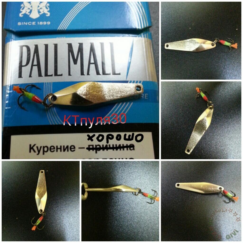 Лень фоткать, и так полно хороших фоток. Длина моей без ушей 37 мм, вес с тройником 4,1 г, материал - мельхиор с обеих сторон, остальные вопросы лучше к автору :p