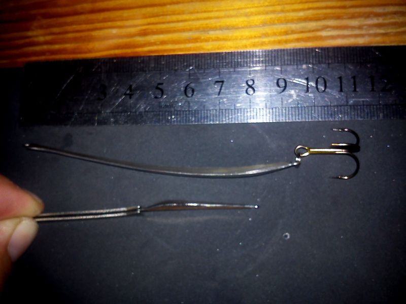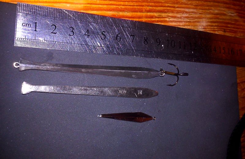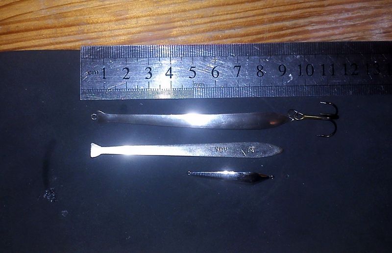 Во.. веечрком довел до ума 2-е блесенки.. одна в стиле "спорт", вторая "большему куску- большей рот" :D Большую назвал "Пинцет" бо шаблоньчиком для коронки именно он и выступил! :))))) Вес 7,5гр., медь +химсеребрение. Игра как у "Рожковской" виляя хвостом убегает- на сбросе, или гвоздит-на рывках