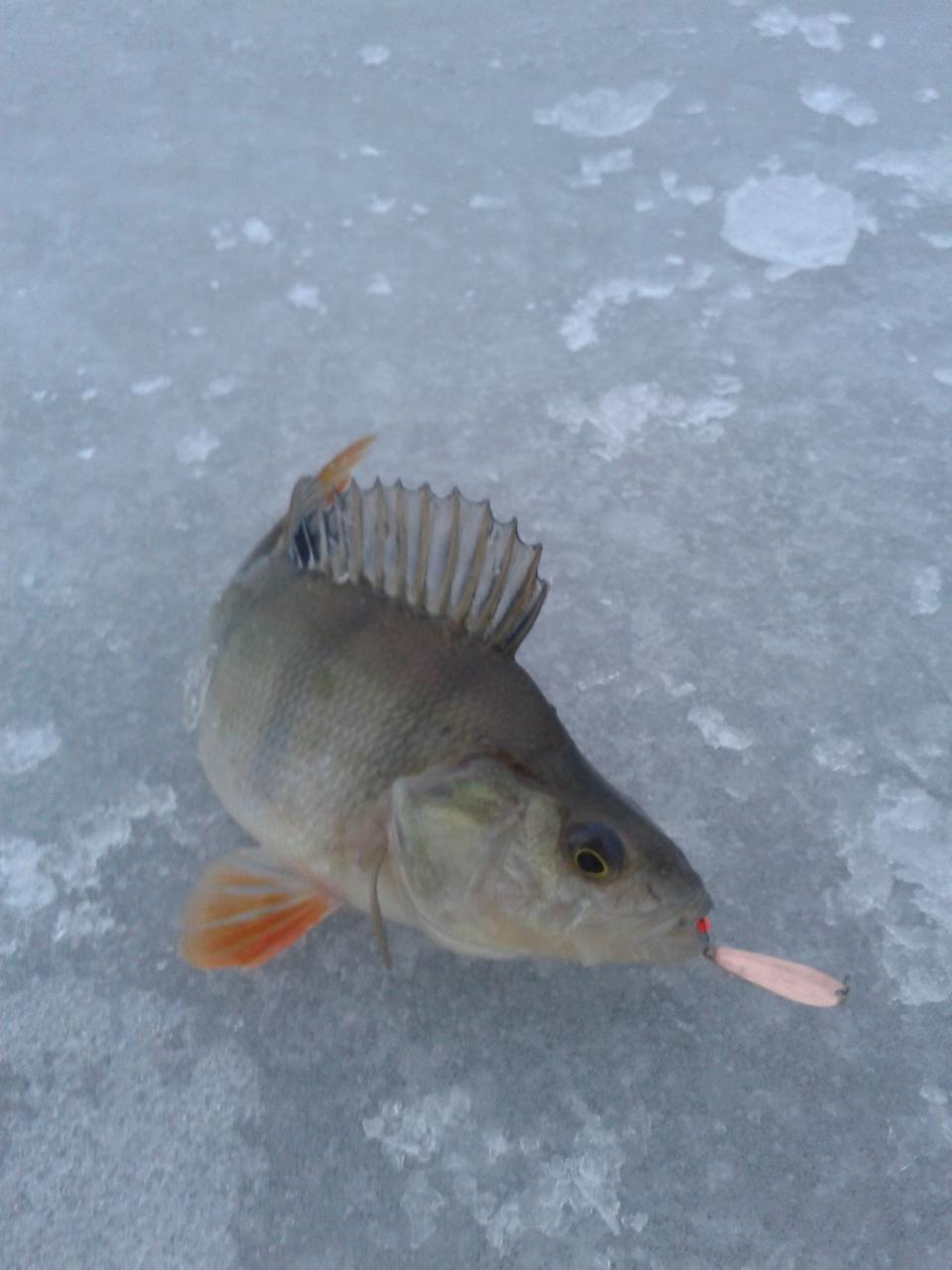 Ловил меньшим листиком - что было привязано на удочке с тем и пришёл. Лёд 12 см , надо снег, тогда будет нормальная рыбалка с матёрыми горбачами и щуками :) ...