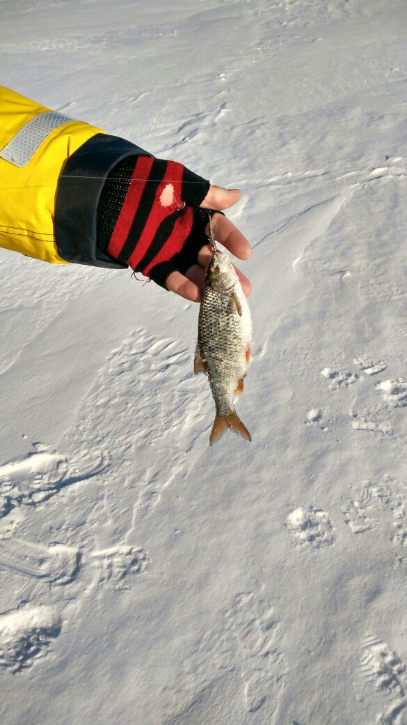 Сегодня искал счастье на водоеме детства,хоть толком ничего не поймал,но впечатлений полный комбинизон.Приплюстнутый, но горбатый,как спортивный велосипед,был снят с пробега:D.Утро было многообещающее,на третей лунке наткнулся на кабанов,которые играли в футбол с моей блесной,при очередном подбросе, подсечка, еле оторвал от дна,и тутже отвалился.Затем рассверлил плацдарм но они как испарились.(понял,что я рукажопый:()Ктлистики 40мм