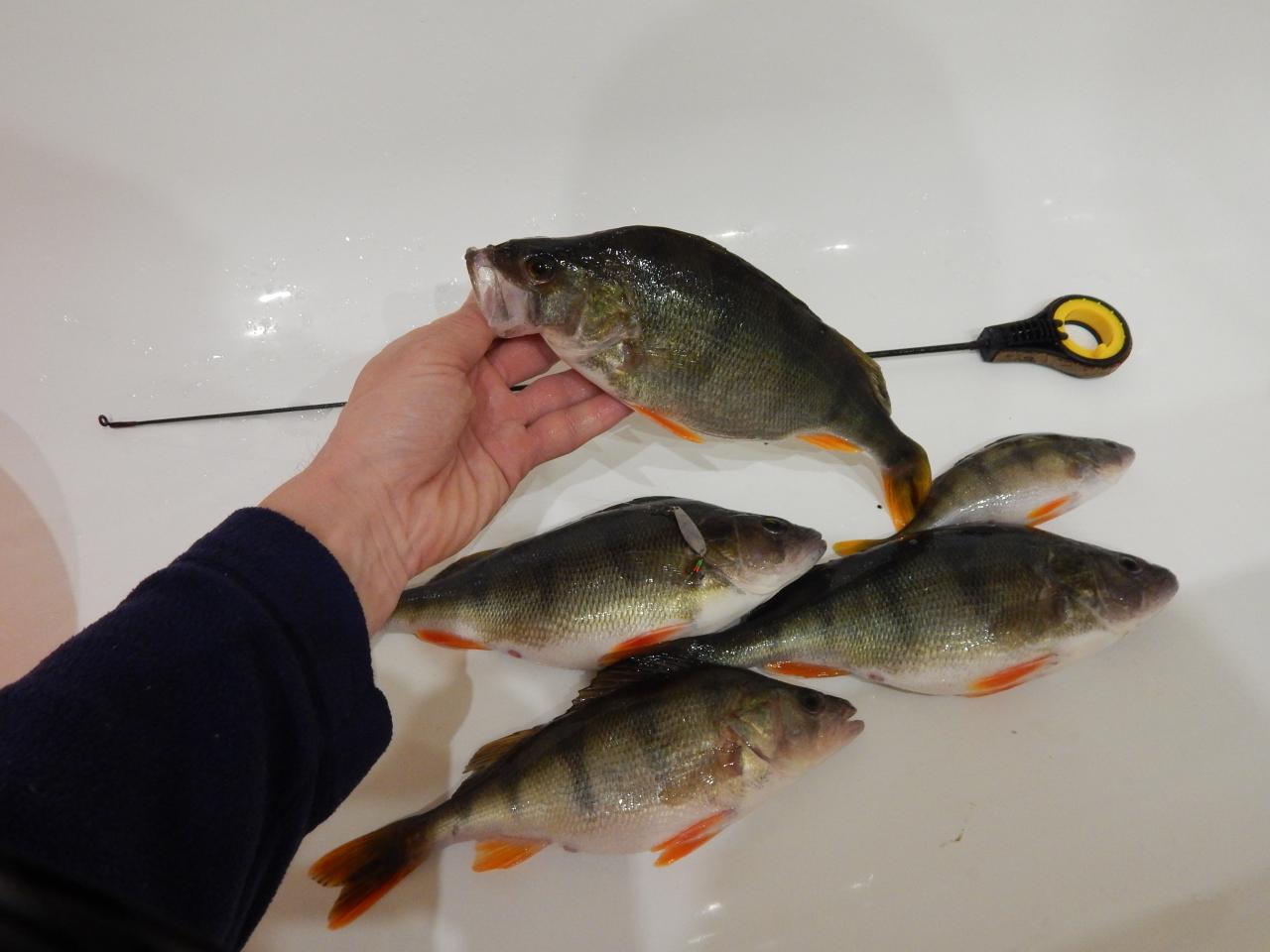 Пробовал ловить разными блеснами в размере 35-40 мм. Ловил без кивка, поклевки были в основном на 2,5 метрах, флегматичные, незаметные. Но самый крупный (по ощущениям) окунь повис когда рука с удильником была на уровне головы, видимо не засекся и сошел перед входом в лунку. Ну так самому крупному и положено сходить - по статусу. :))6 Фото