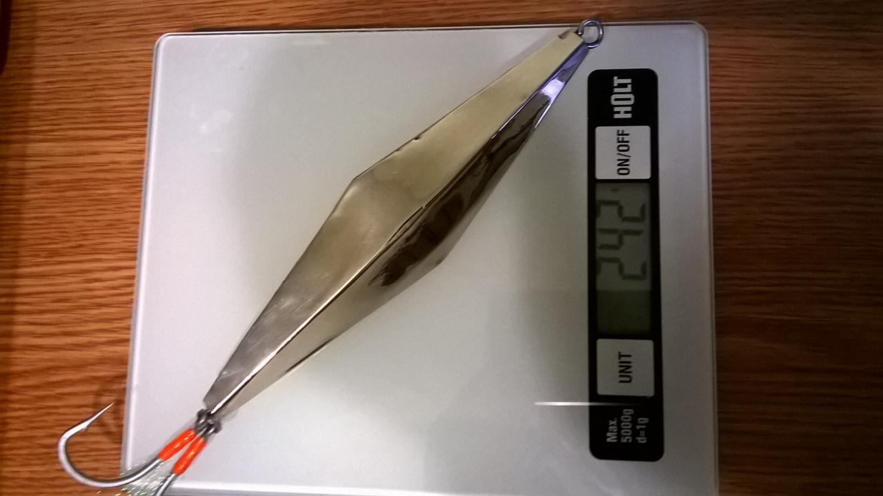 1. Копия чьей-то понравившейся мне блесны (выкладывал тут намедни), 33/2,8. Не точная внешне, но абсолютное попадание по работе – очень активная сыпучка с уходом вперед на высоких сбросах и идеальная для КД. Шикарная рабочая блесна до глубин в 3 – 4 метра. Все 4 поклевки и три окуня были на нее. Дайте две в чуть большем размере/весе.