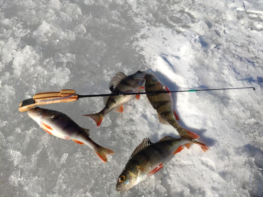 В субботу у меня полосатый отдавал предпочтение узким и вытянутым блеснам. Стабильно работали а-ля "Удача", трехгранка от МК. Экземпляр покрупнее соблазнился Маралистиком. Ёрш тоже не устоял,взял с поклевкой. Удар "отдай дрын" также поимел.Причем дрын действительно пришлось отдать -- был выбит из руки.Сход. Окунь в целом передвигаться ленится, но если попадешь под нос или рядом - поклевки довольно злые. Самая большая серия - 4 с лунки. У одного из пасти торчал рыбий хвост,и все равно позарился. Рыбка - плоточка.