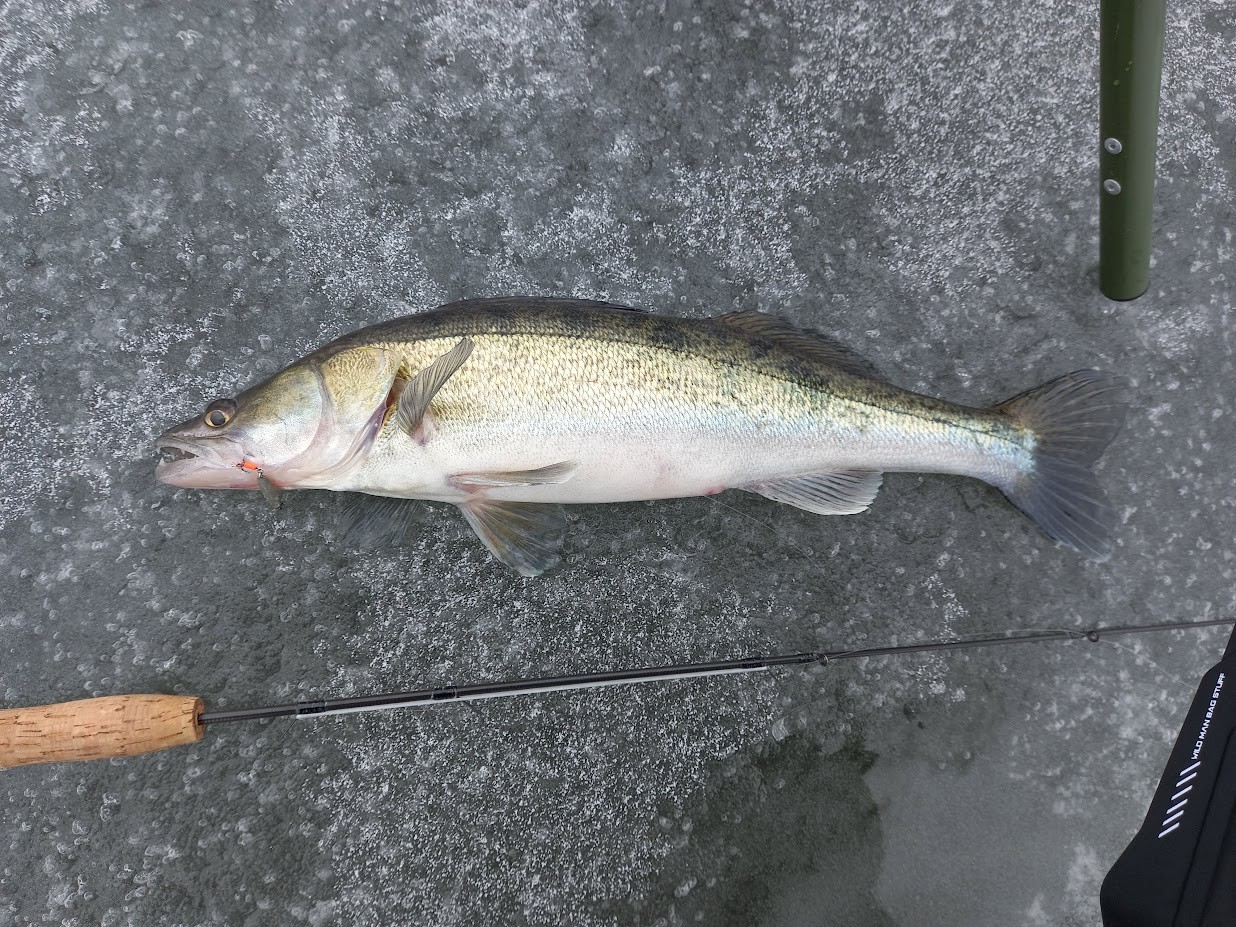 Более длинной я могу пролавливать бОльший горизонт , работая тюльпаном от самого льда , до выше головы, при этом не работая плечом, а лишь кистью и немного в локте. По чуйке и мощности для хорошего окуня - всё замечательно в обоих удочках. Со щукой думаю тоже не возникнет вопросов, она обычно засекается получше чем судак с его челюстями - пассатижами.