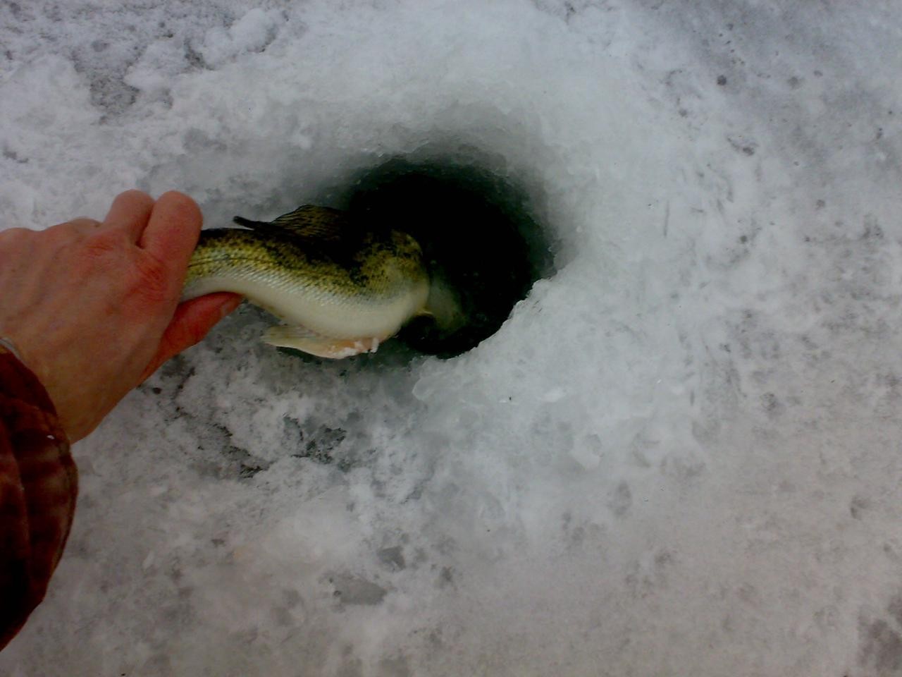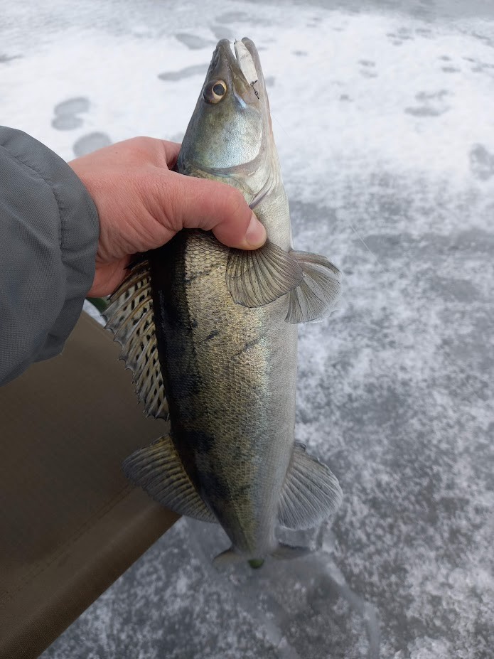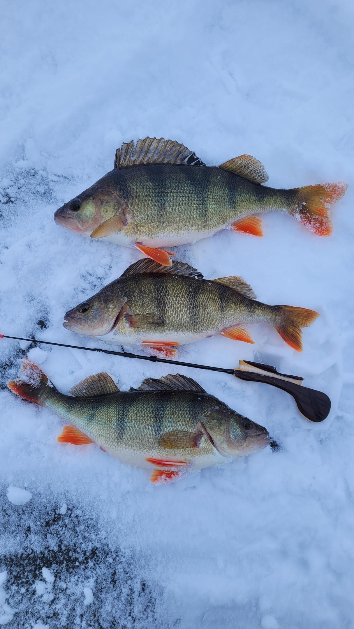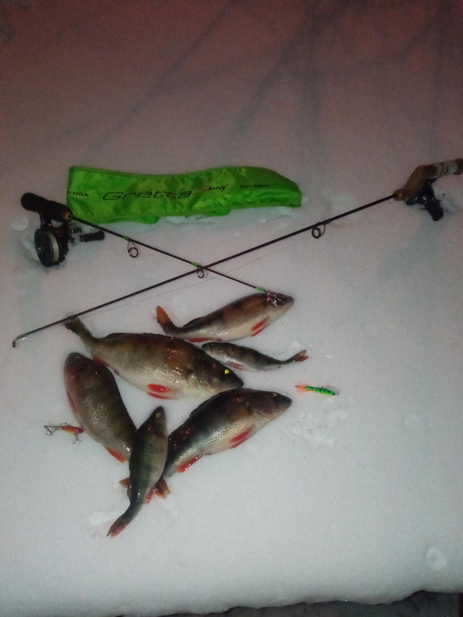 В Субботу поставил ставки, побегал по известным окунёвым пастбищам без особого успеха, на самом перспективном по мордастому окуню расположился экипаж , бесцеремонно плюхнув кости между мной и моими ставками, и за 15 минут превратив лёд в решето.