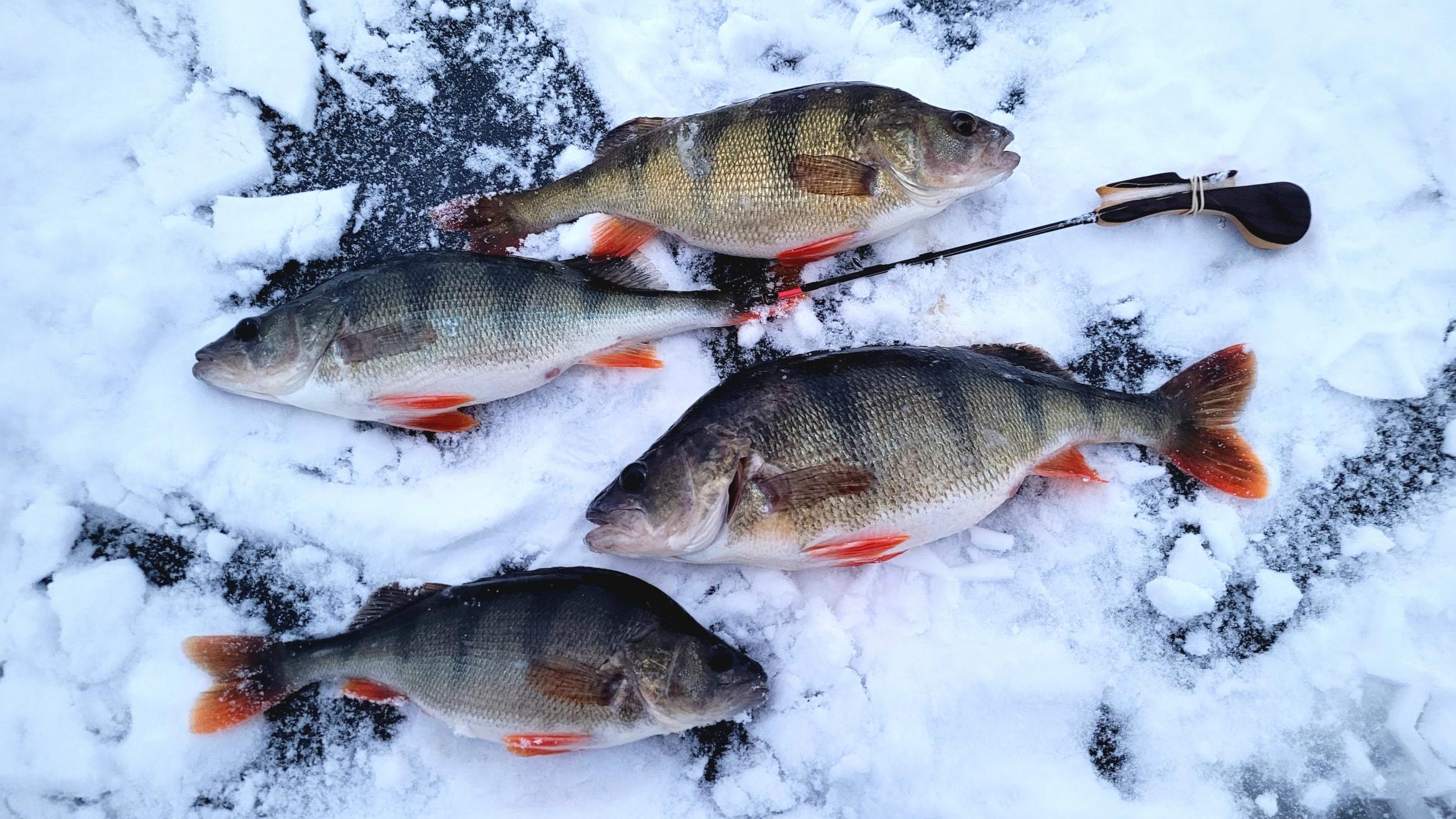 Несмотря на некоторый пессимизм в связи с глухозимьем, решено было посетить один коряжник залитый водой в пределах Минской области в конце прошлой недели. Народ присутствовал и уловами не хвастался. Основная глубина ловли была 4-5 метров, поэтому использовал КТ36 и малую гешель. До обеда было совсем глухо, даже мелкий окунь просто подвисал без удара. На последнем перспективном месте кто-то стал усиленно играть блесной в футбол. Этот кто-то оказался неплохой окунь грамм на 500. Поймал его наверное с 10-ой попытки. Рассверлился, но больше не тычка. Решил перейти на балансир. Очень люблю не сильно популярную модель Lindroos Tuulos, который и с кисточкой и крылом. Люблю его игру с эффектными разворотами. В лунке, где до этого поймал окуня, тут же доловил самого крупного, так сказать килошника, который полностью заглотил изделие из Финляндии. После этого поймал еще трех и один сход. На следующий день ситуация повторилась. В блесны тычется, а балансир глотает. Результат следующего дня на втором фото. Вот такие получились блесно-балансирные рыбалки с уклоном на второе слово. Блеснилку под все приманки использовал Игоря (UGO) с тестом 3-14 (телескоп) и очень доволен как она продергивает даже 9 граммовые балансиры при этом позволяя комфортно ловить на блесны от 3,5гр.