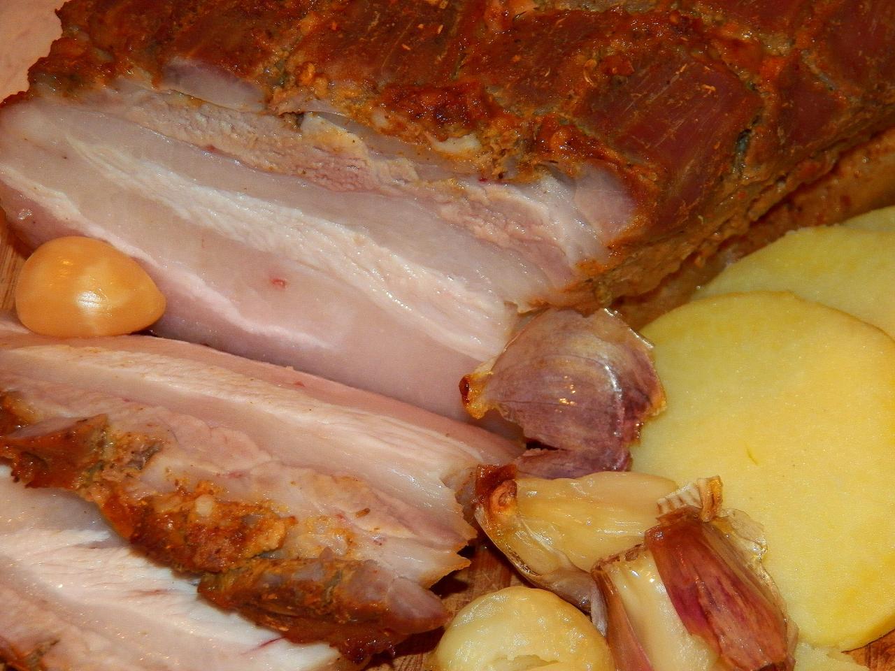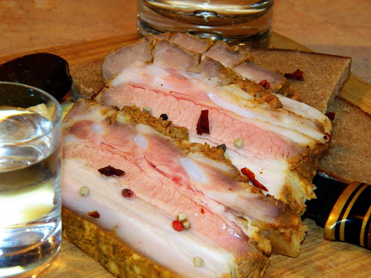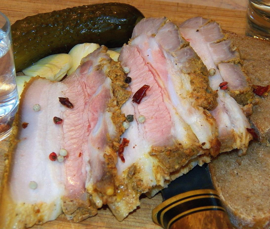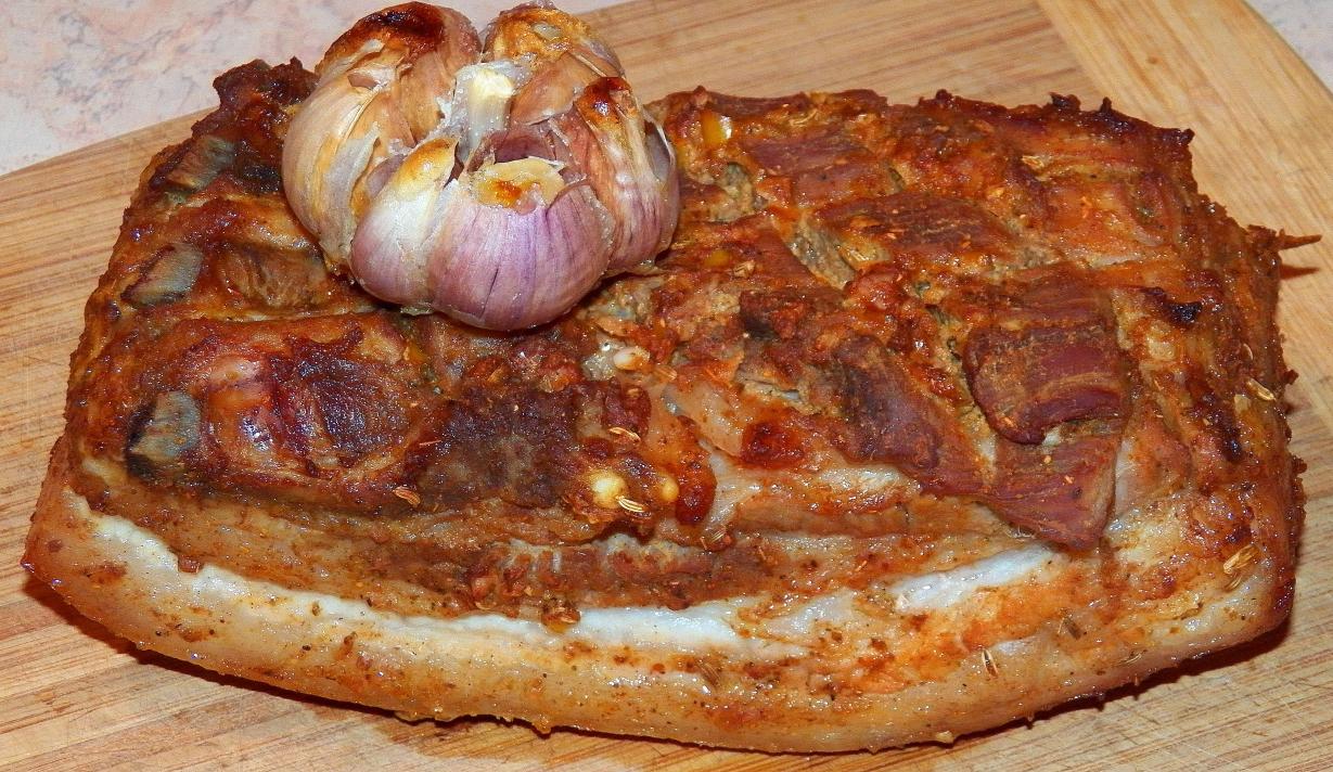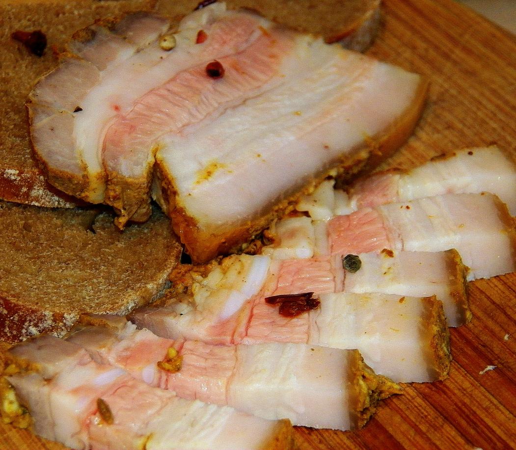 Это была пятница. Утром я на фейсбуке увидел рецепт запеченной грудинки и выпал в осадок. Замариновать сало в майонезе с чесноком и запечь в духовке... Очень-очень жирно, на мой взгляд, но идея запала в мозк, поэтому вечером сделал так...