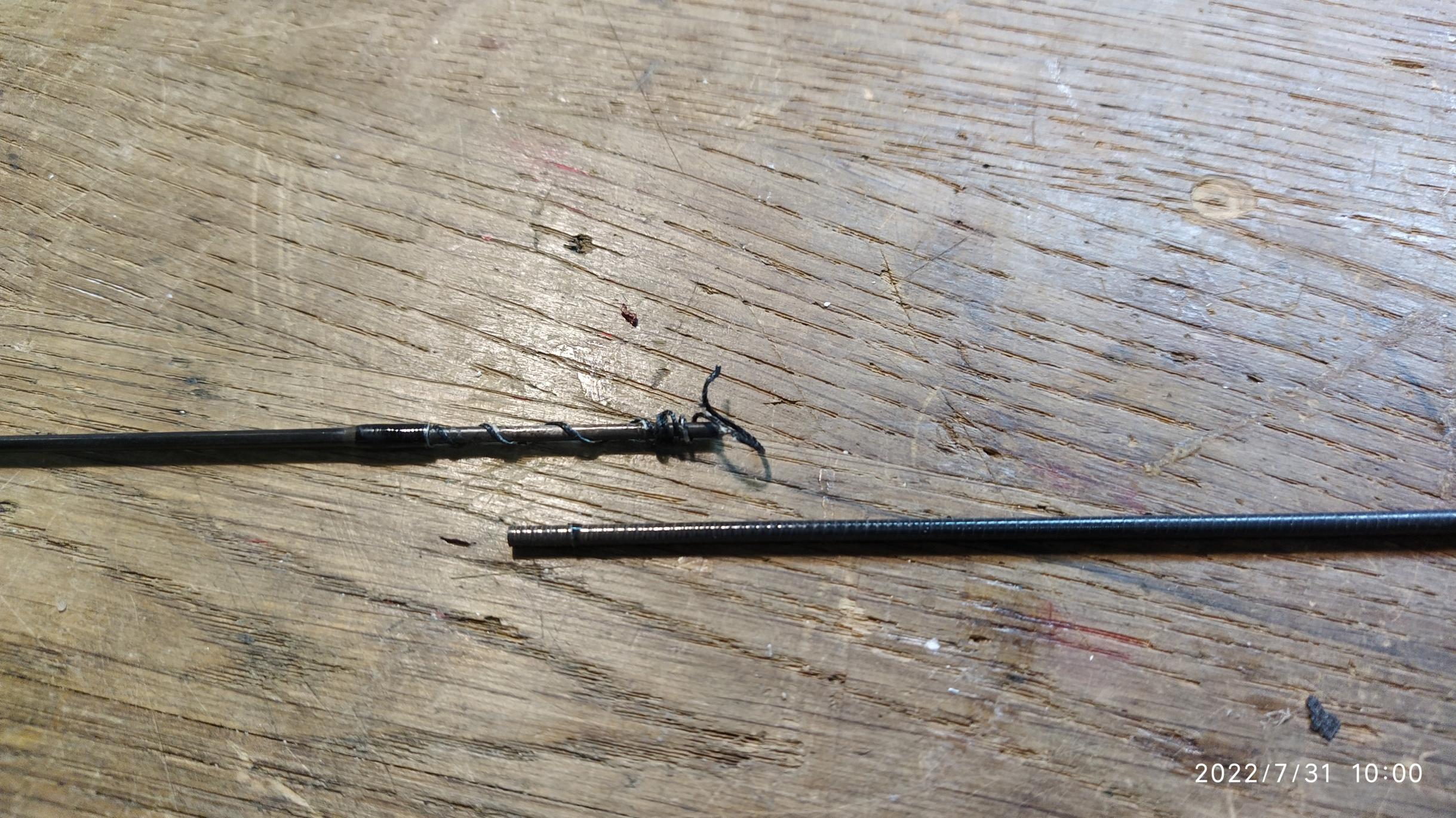 Вчера нежданно столкнулся с проблемой. Утро в темноте на ощупь вытаскивал первое колено, оказалось, что взялся за вклеенный хлыстик, и он успешно у меня вытянулся. Растерялся, клей не нашёл, хотя был с собой. Вставил на сухую, обмотал старой ниткой, а сверху изолентой (вожу с собой). Отрыбачил без проблем, не считая что иногда леска цепляется за изоленту.