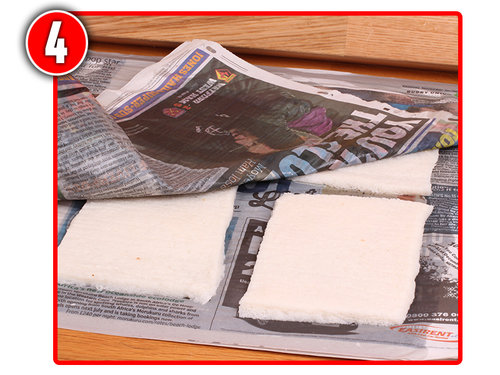 С тостового хлеба удаляется корка, затем он размачивается в ванночке с водой, помещается на доску, покрытую несколькими слоями газет, сверху прикрывается тоже несколькими слоями газет и прижимается второй доской. Сделав эту процедуру вечером, к утру получаются тонкие листы влажного хлеба, которые достаточно упругие, рвутся, не разлезаясь, на куски и хорошо держатся на крючке.