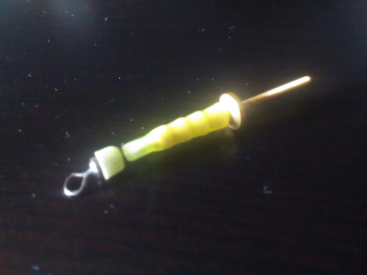 ID:	3828055, но меня этот вариант не устраивает! На фото попа на неё резинка какая-то покупная в магазине, далее вертлюг и вертлюг скручен/зажат леской!