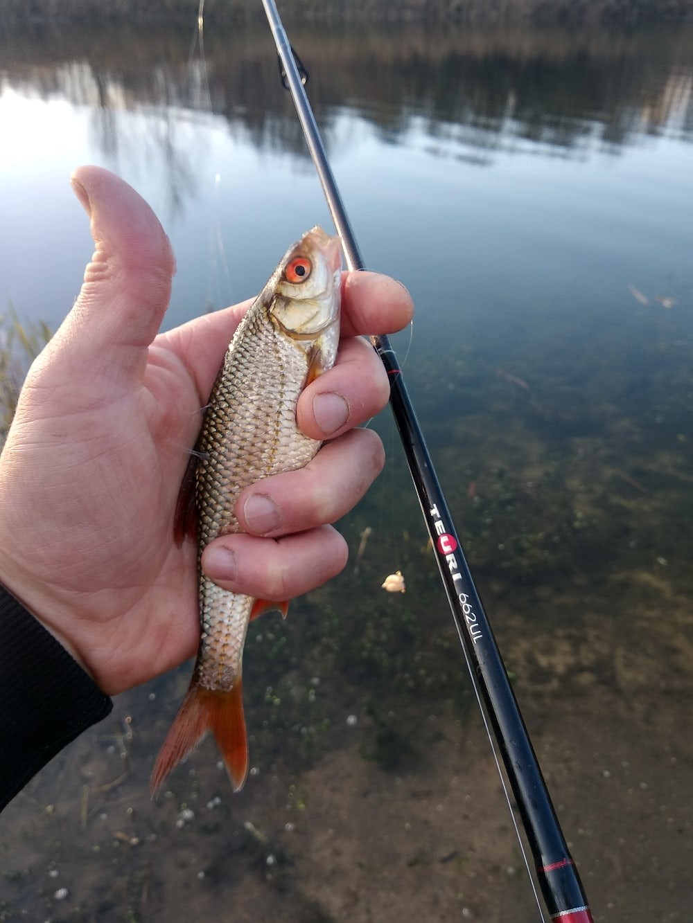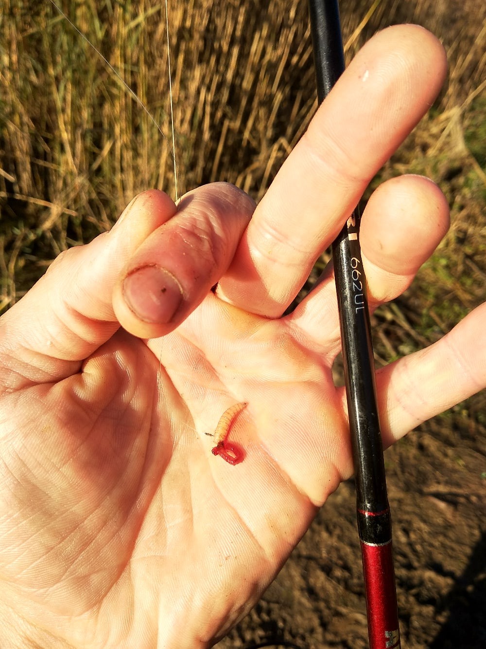 Ну я не долго думая, собрал всё необходимое, купил пару банок опарыша, мотыля чуток на всякий пожарный, и через пару часов уже возле ГРЭС. Связал "уклеечный" вариант отводного поводка, зарядил ультралайтовую палочку, поставил новую плетёнку Teuri X9 #0.4. Сам поводок, точнее несколько разных вариантов, связал из флюорокарбона 0.11 - 0.13 на крючках номер 16 - 18. Грузик весом 3 грамма, на крючок два опарыша... И погнал прочесывать акваторию. Был там впервые, поэтому где надо искать искомый объект, представлялось достаточно смутно. Поэтому начал от начала канала, где он вытекает из озера, и двигался вниз по течению...