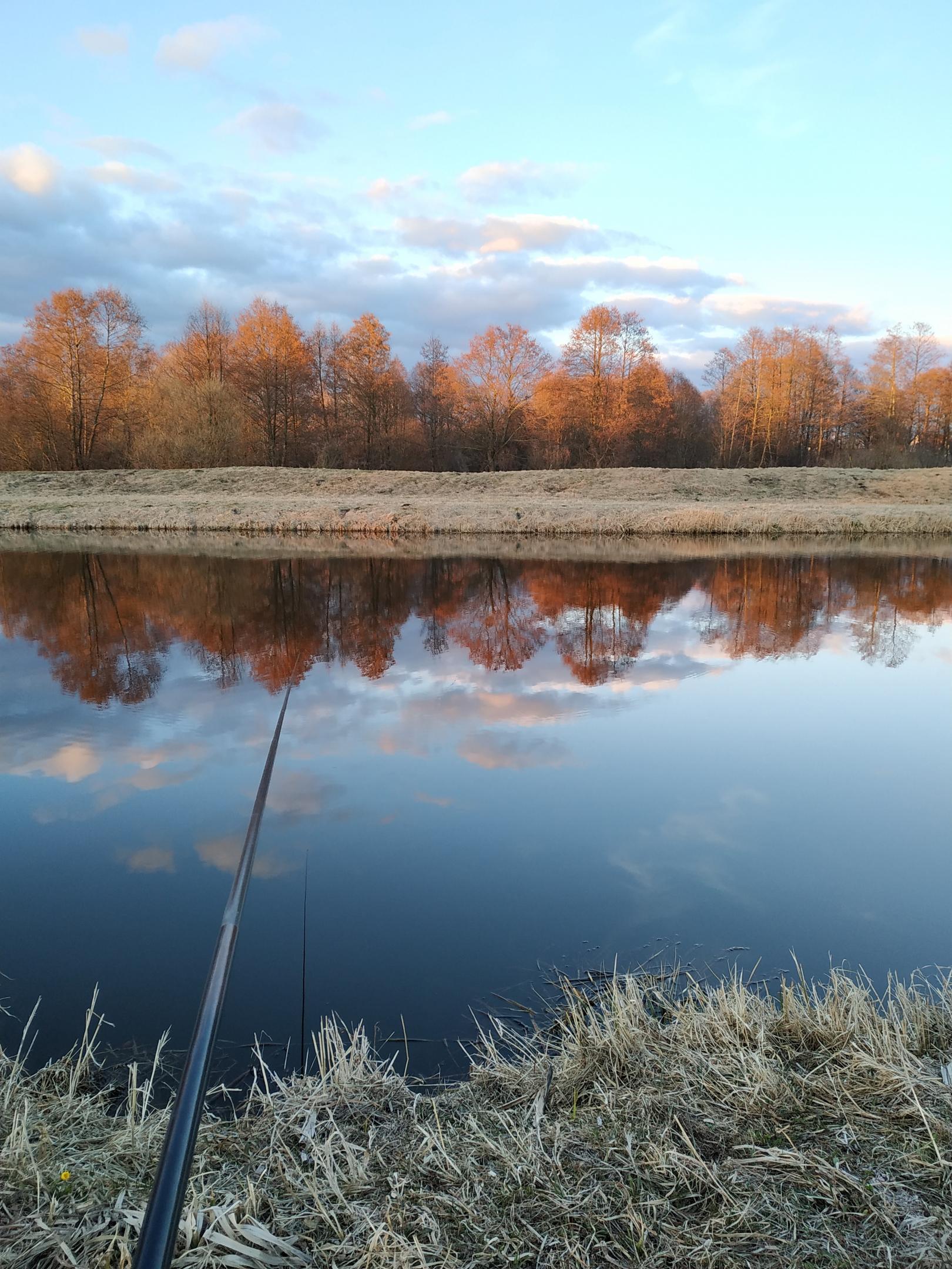 Настоящее удовольствие началось, когда стих ветер. Чистая водная гладь, закат окрашивает деревья в приятный осенне-золотистый цвет, одним словом - красота. А самое главное, что поклевки стали хорошо видны, и даже колючка на время куда-то пропала.