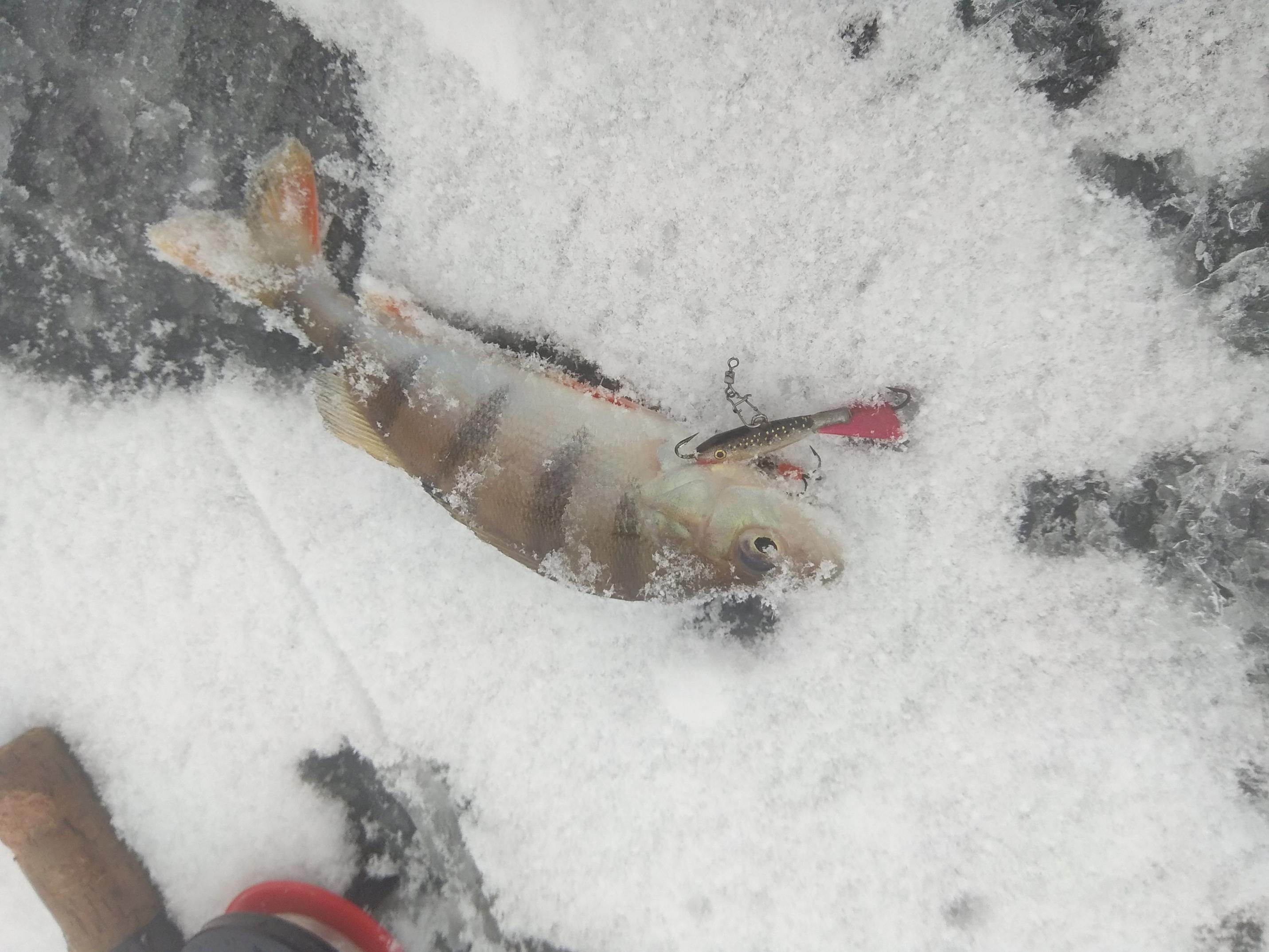 • Ловят небольшого окуня и хорошего ерша. Ёршей видел гр по 100.Лед в среднем 6-8 см, но было несколько промоин, некоторые из них немного затянулись, но думаю всем понятно, там где недавно затянулось 2-3 см. Ставят ставки на мелкого живца, но был пару раз- поклевок не видел.