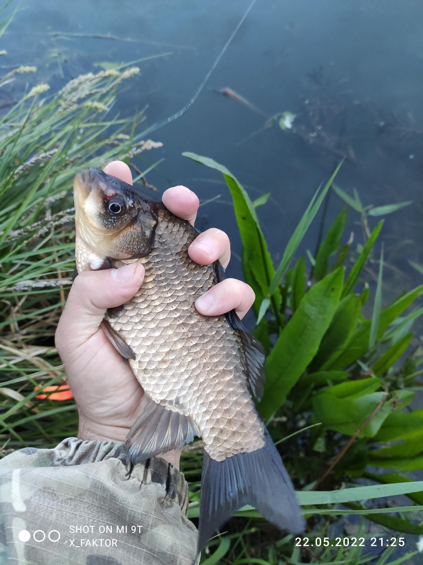 В 19 мы переехали к мосту в надежде на освободившиеся места, к счастью, такие нашлись. Прошел час, я увидел 5 поклевок и ни одну не засек. Подумывал об очередной смене места, но было интересно все же перехитрить ловкую рыбу. И мне это удалось, два карасика подряд отправились в садок. А дальше рыба расклевалась, примерно в половину девятого начался вечерний выход. И хотя реализация сильно хромала, поклевки не заставляли долго ждать. Ловил на мотыля и тесто. Червь в игноре, ничего другого не пробовал.