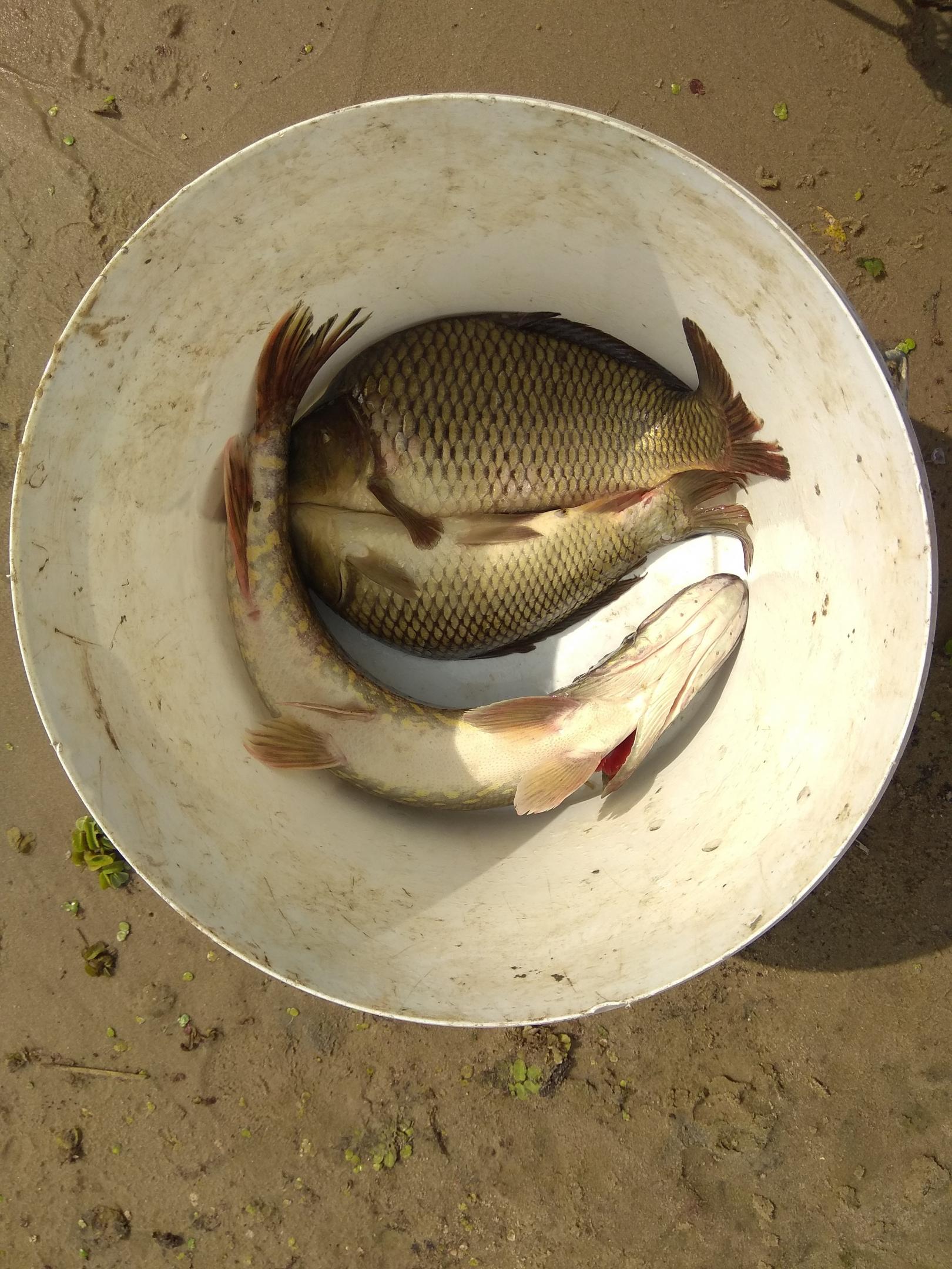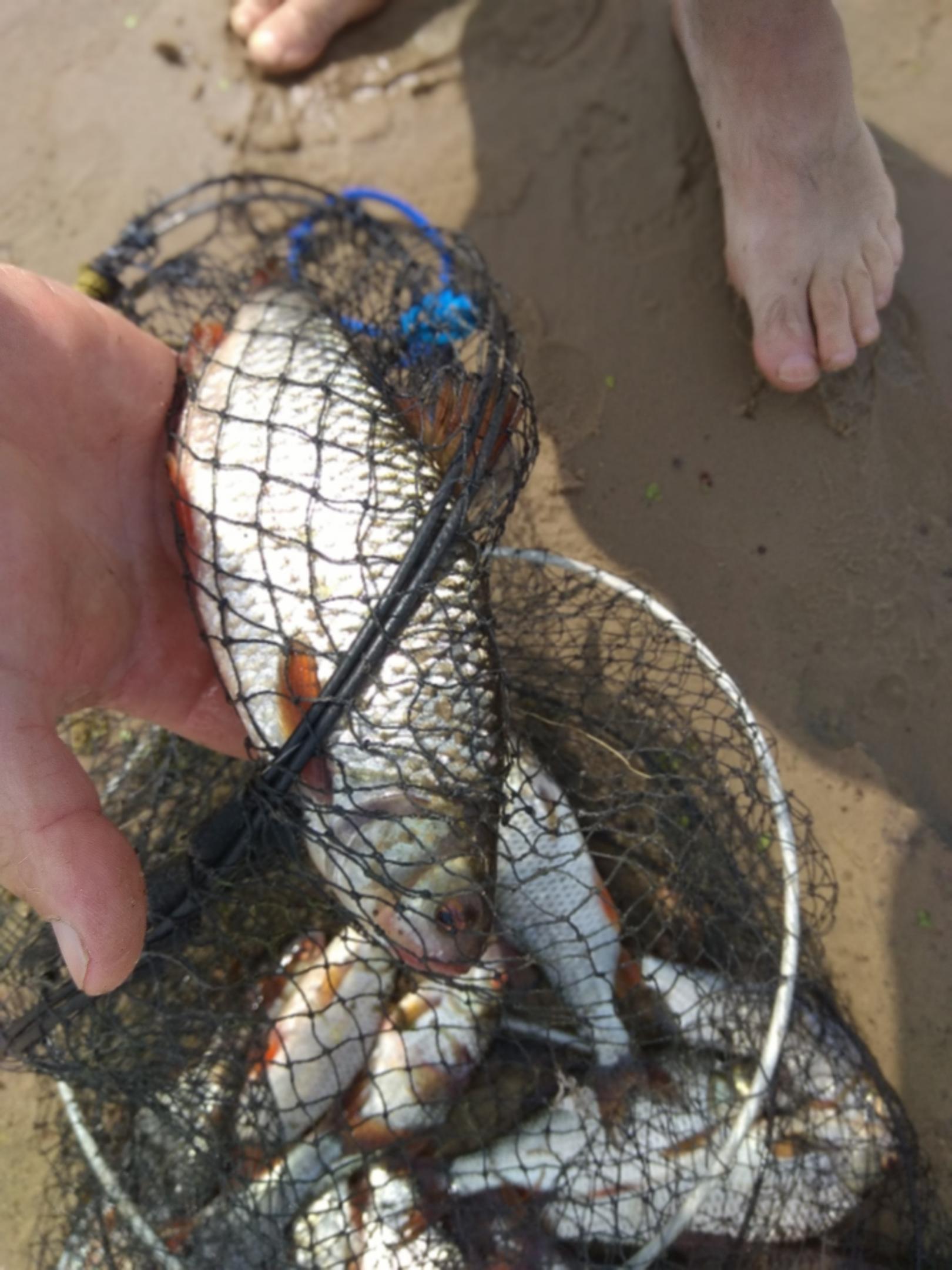Припять, дубль два. После прошлой рыбалки осталась какая то недосказанность, или недоловленннасть, даже не знаю как правильно это назвать, но хотелось повторить. Место немного поменяли, проехали от Микашевич выше, км на 15. Место для стоянки нашли сравнительно быстро. Народу хватает, но не так как на Микашах. Прошли пару раз на дорожку, ноль, да мы и не упирались. Поедем на бель. Брат предлагал сидеть около лагеря, мол народ ловит, чего от добра... Но выбрали прогон с большой глубиной и меньшей текучкой, не будет сносить наши не тяжёлые кормушки. Рыбка брала постоянно, но в основном не крупная густера, было пара- тройка зачётных плоток. Потом переехали раз , другой. Потом пляж около лагеря. Это место было самым безрыбным, течение быстрое, глубина до середины реки по шею. Но хорошо что брат не бубнит, понял что не лучший вариант. Так как приехали к обеду, надо было и лагерь готовить. Спали в бусе, тепло , просторно, и палатку не надо ставить. Вечерком посидел на берегу, красота, кто то кричит у хмельном угаре- Припять, прими рыбака нового, Ау. Как он хотел что бы его Припять приняла? Не понятно, но народ на берегу повеселил. Ребята рядом стояли всю ночь. Но ловили на опарыша, и поклёвки не давали дремать, мелко рыба долбила постоянно. Утром кофе и новый план на рыбалку. Отъехали не далеко от стоянки, нашли берег с нависшими кустами и не быстрым течением. Лодку- привязали к кустам, и пробуем. Я достал пятерку балонку, брат фидер. Несколько проводок в холостую, пока нашел нужную глубину. Как только приманка начала чиркать по дну, сразу пошли поклёвки.Первая рыба плотва, гр 200, вторая тоже. Брат кинул кормушку под куст, пять минут и фидер пытается выпрыгнуть из лодки. Немного повозившись, достает сазанчика, гр на 800.Бодрый такой, не остановить. Потом вторая рыба, и опять сазанчик. Почему не карп?, И тело спортивное, и сопротивление как у 2 кг леща, и хочется, что бы был не просто карп, а Сазан- чик. После третьего, у меня рука потянулась к фидеру. Ещё проводка и попробую. Отпустил папловок метров на 39, оп, притоп, подсечка и удочка в дугу, наконец то. Рыбка минут несколько вообще не поднималась, поводок 0,14, можно подержать. Потихоньку отвоевал метров десять, и тут рыба делает свечу, щука... Явно больше кг, вот те раз. Воблеры не хотела, кукурузу Ам. С трудом подвёл к лодке, взяли. Попробовал на фидер, опять плотва, у брата сошел ещё один около лодки и на минут 29 тишина. Попросил меня выбросить на берег, что бы и ноги размять, и посидеть на твердом берегу. Рядом , метрах в 25-30 был небольшой мыс, там и присел. Забросил фидер к кусту)), здесь нету брата, кукуруза только у меня)), удочкой пробую в проводку. Несколько поклевок ,метрах в 20 от меня, одна достойная плотва. Поставил скользящий груз, начались хорошие поклёвки, не одного подлещика и густеры, только зачётная плотва. Через какое то время слышу шуршание в траве на высоком берегу. Была уверенность что это или уж или ещё что хуже. Я этих мразей не могу переваривать, вырос в Слуцком районе, там даже ужа никогда не видел, и поэтому какое то стремное к ним отношение. Шуршание подбиралось все ближе и ближе, надо что то брать в руки. На берегу лежал не слабый кол, вооружился, жду. Уже и камыш на берегу начал расходится, постучал по траве, затихнет на несколько секунд, и опять а мою сторону. Потихоньку подошёл , замахнулся, бах на шум, дикий визг, и что