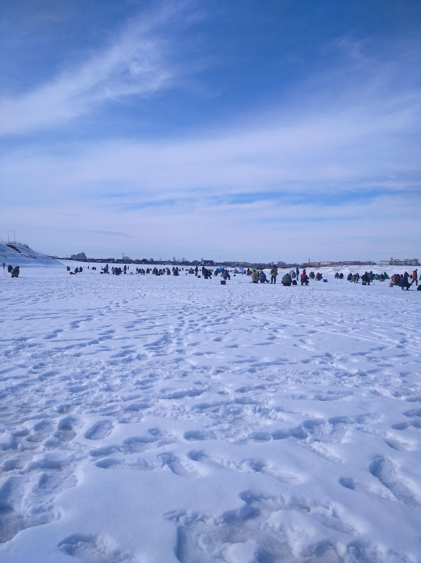 Но в 15:00 как током ударило, надо ехать! В 15:30 я уже на льду, походил в толпе, присмотрелся, ага, походу четверг повторяется.. Ловят на стоячку! Задрочили мы её за зиму всякой нечистью, захотела рыба мяса