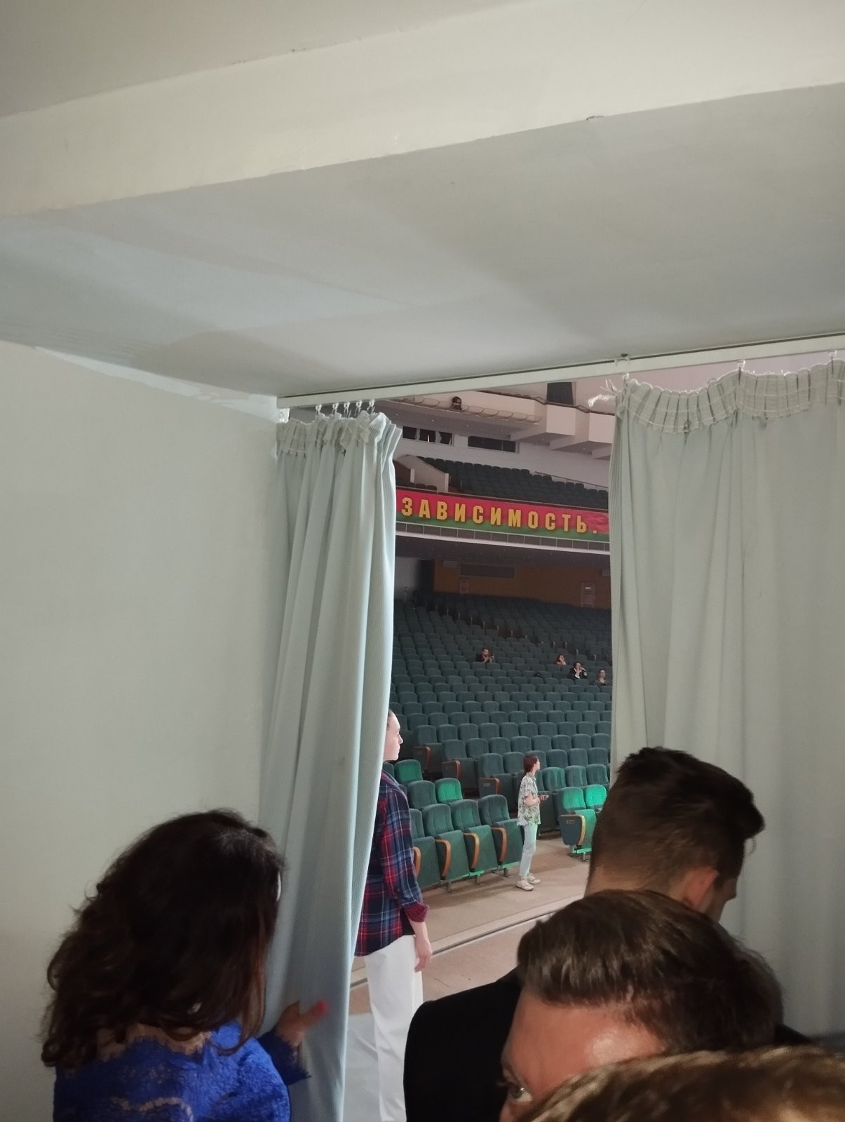 Или, вот что было написано большими буквами в большом зале дворца республики, если смотреть в зал из-за кулисы...