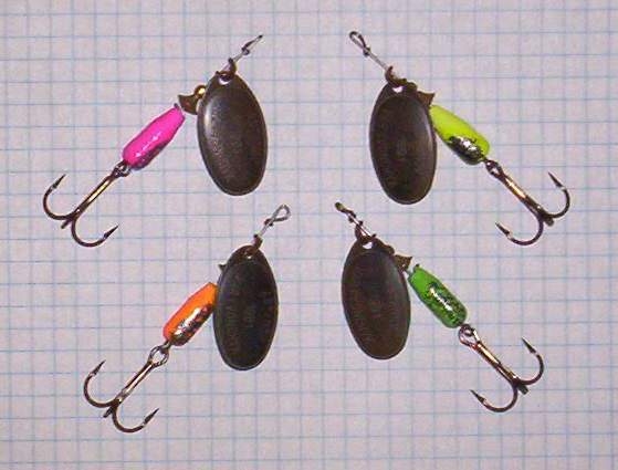 ps Опять таки для справки. У "туфлей" лепестки всегда "под патиной" (покрытие типа "антик" - это то, что делает лепесток незаметным), а вот тела красятся флуо эмалями типа "компауд". Ну и "тело". Без такого подлепесткого груза блесна любая похожая так как "туфля" работать не сможет.