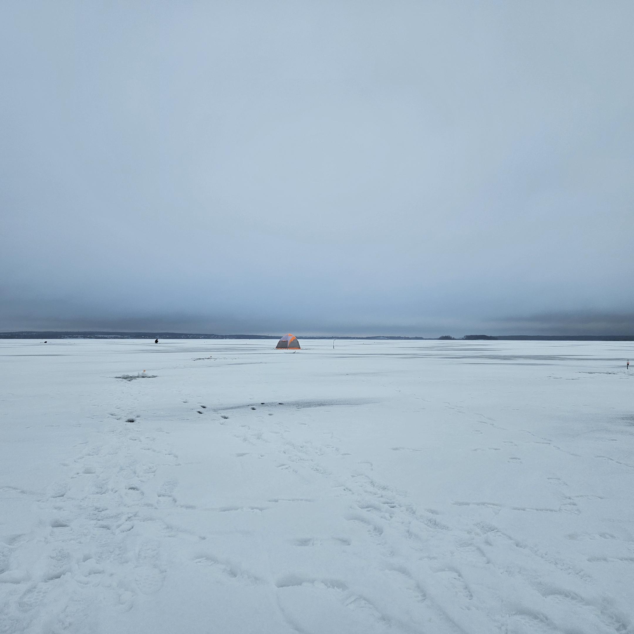Уже при забросе первой оснастки была поклевка на мотыля на опускание, но мимо. А следующие полчаса не клевало совсем в палатке. Решил проверить запасные лунки.