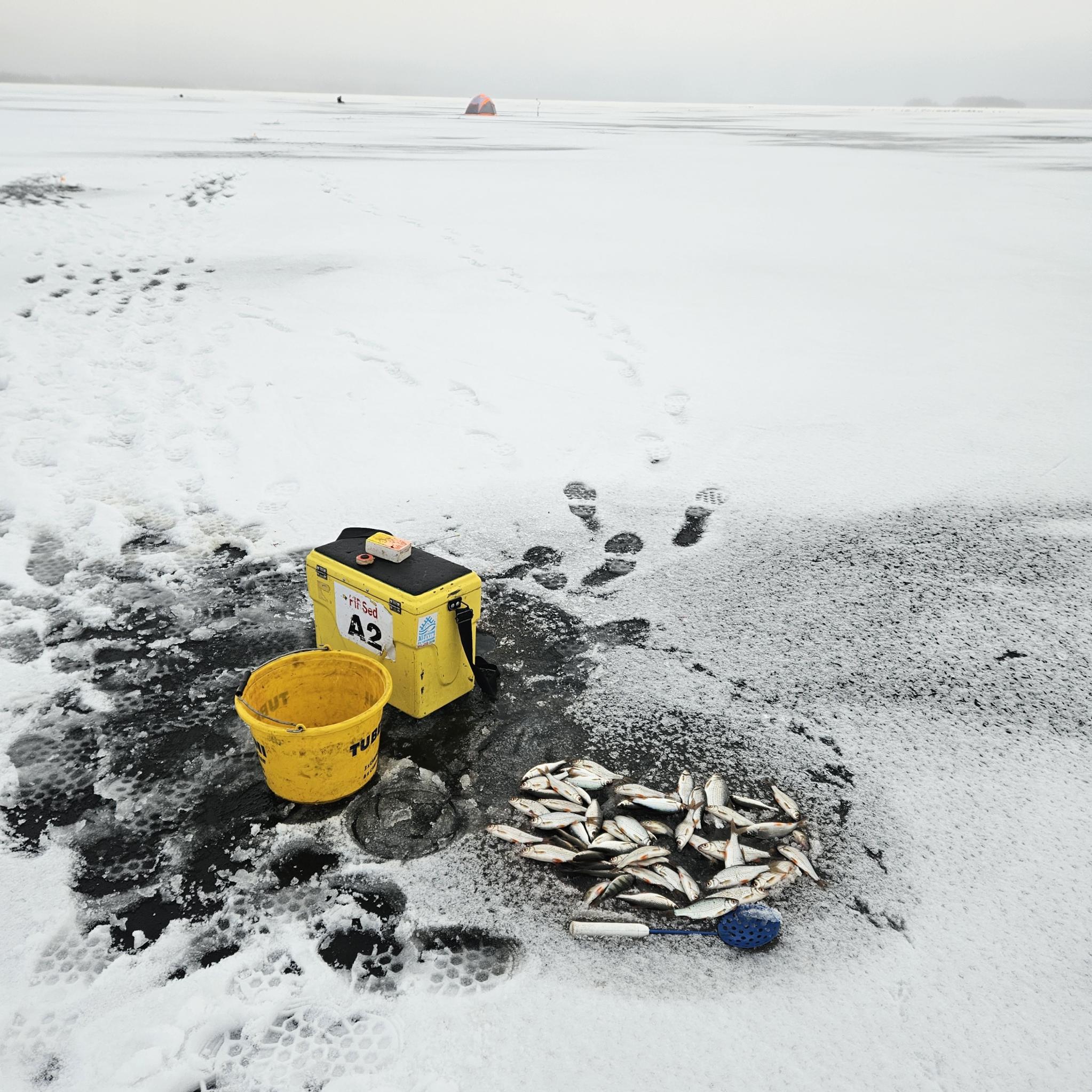 У меня до вечера только плотва, где то штук 50 плотвиц, максимум на 100 грамм, но единичная такая, остальное живец, пару мелких окуней и штук 5 ершей.