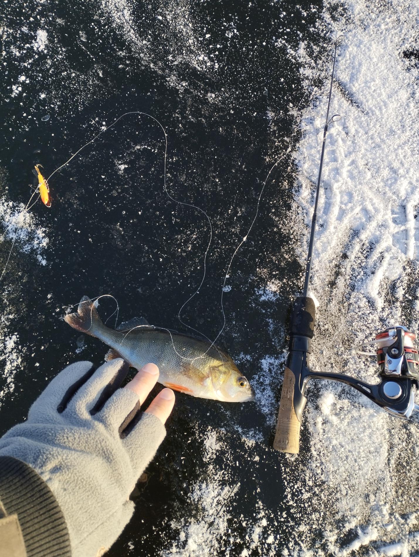 Вчера вечерком заехал в район затопленной дороги, лёд неравномерный был, в одном месте 10см, шаг вперёд 4см, оказывается 2 дня назад там ещё лебеди плавали, сказал подошедший рыбачок. У меня ни тычка, он щуку под 1.5кг со ставки снял. Сегодня приехал на свои места, в район между спасвлкой и 4ый пляж, лёд везде пол 12-14см, трещит, прозрачный, рыба не клюёт.... 3 часа пробовал на чёрта, блесну, балансир нихт. В конце дня с одной лунки все таки 2 окуней словил неплохих. Потом затрещал лёд и ничего. А так на природе лепота, солнце, тепло, ветра практически нет, красота. Спасибо озеру, завтра с утра сходу ещё в разведку в другое место. Всем добра!
