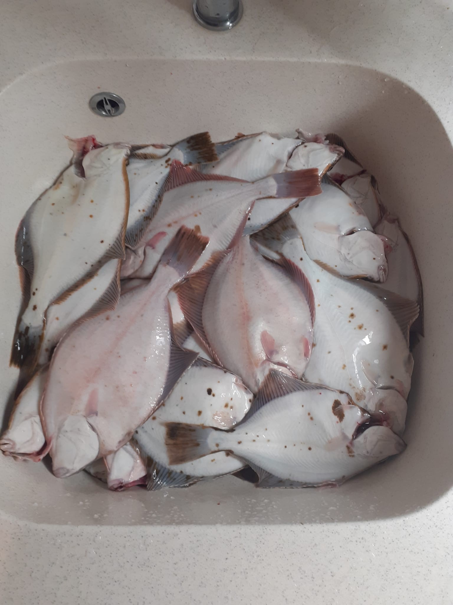 Точную массу БРУТТО установить уже не удастся, т.к. регулярно по судну бегал боцман и потрошил наших доршей. Все внутренности - сопровождавшим нас чайкам за борт.С трудом отбили у него наши печенки(сорри за каламбур) - местные рыбачки(поляки) не забирают печень!