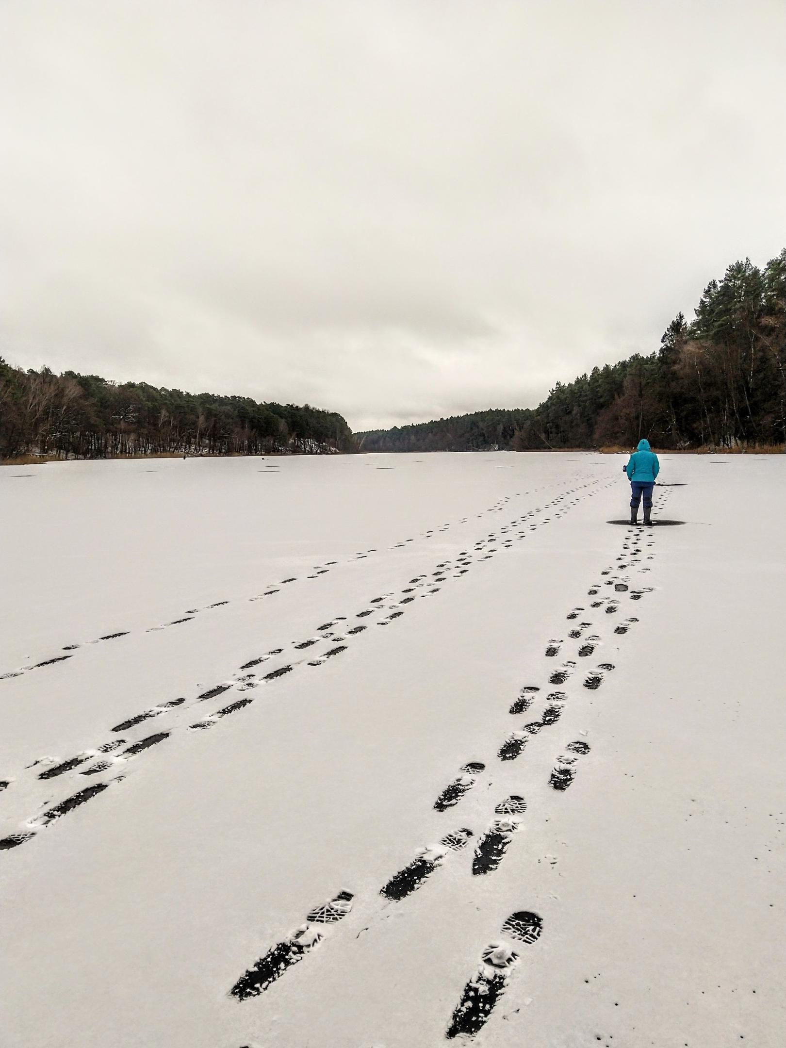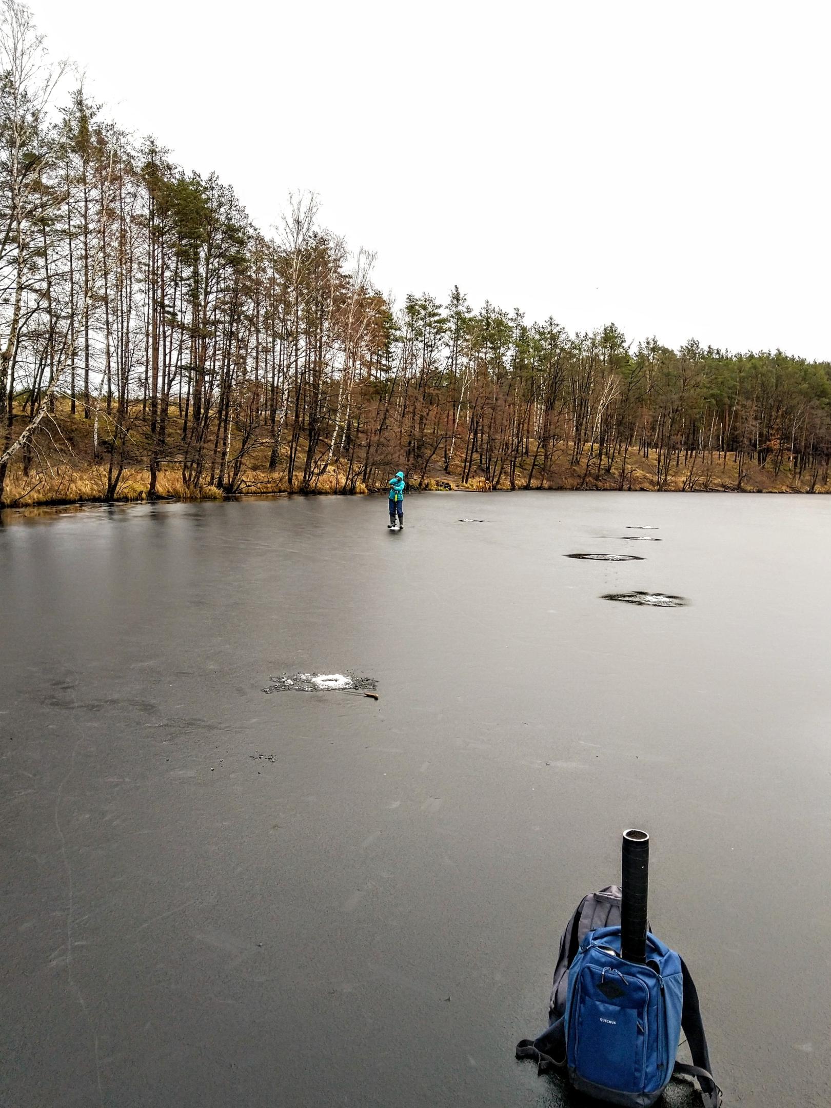 Лёд потрескивал, прогибался, но держал. Поэтому по водоёму не бегали, от греха подальше, а сверлились вдоль берега, не дальше 10-15 метров.