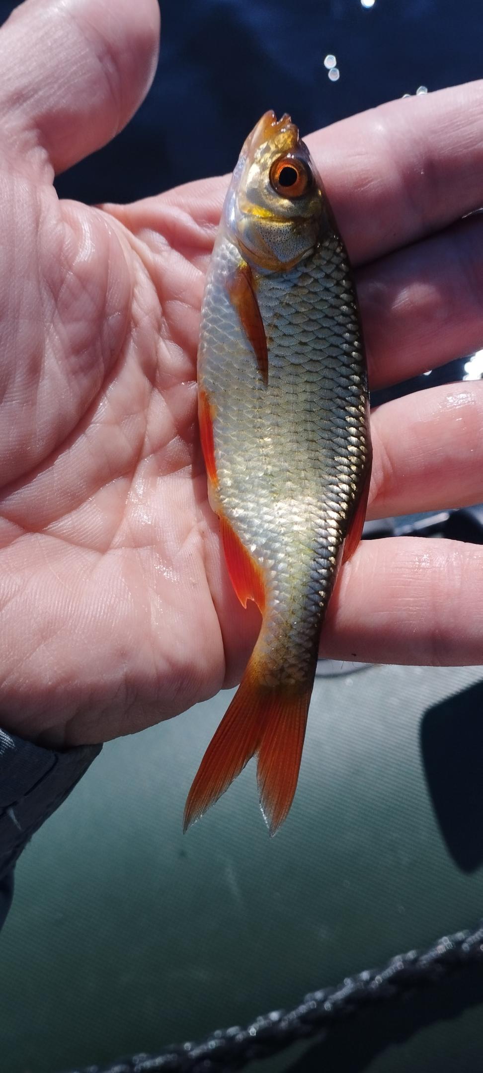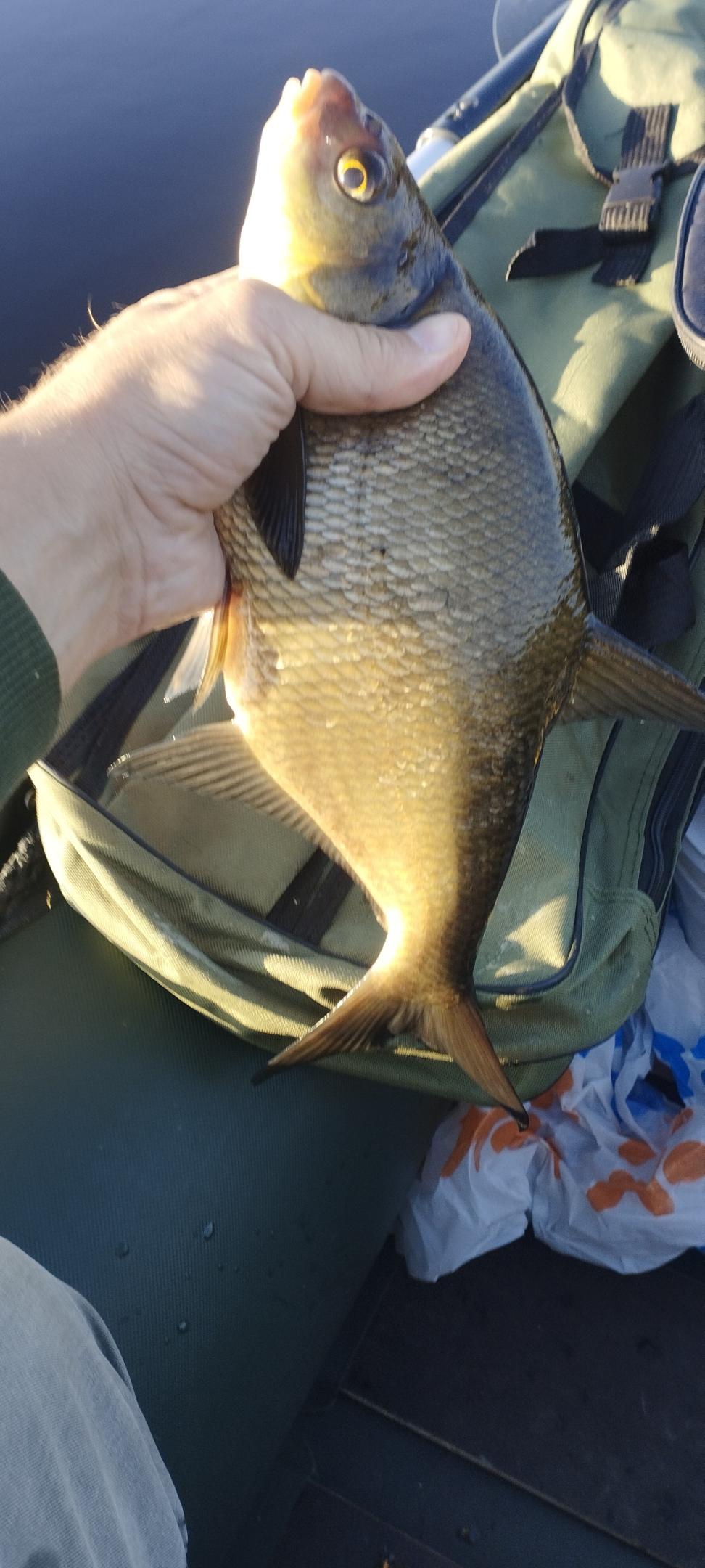После закорма красноперка, сход чего-то хорошего и наконец первый подлещик в садке, затем ещё один, чуть меньше, снова сход и до 11 много мелкой красноперки. Затем небольшая пауза и линек в подсаке. А дальше только красноперка, пара окушков и несколько плотвичек.