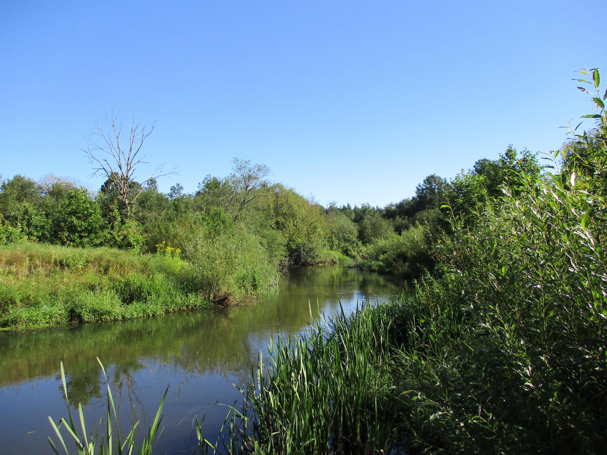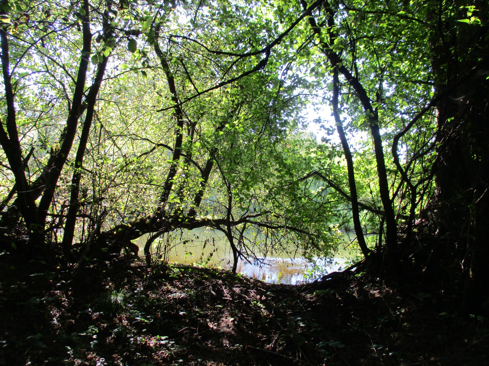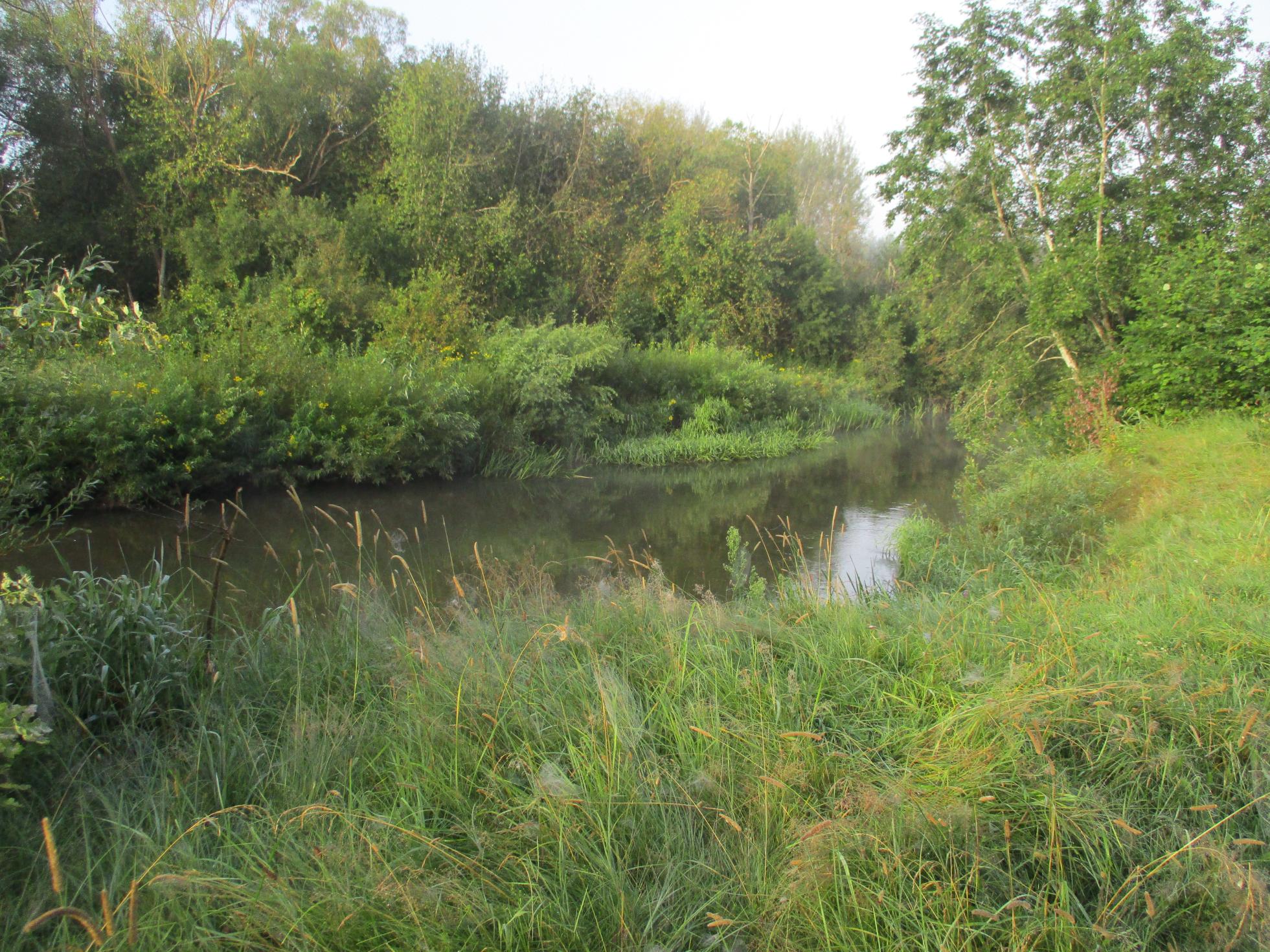 ..Утреннее кофе и вперёд. Уровень не летний, вода мутноватая, но всё в пределах допустимого. С утра обильная роса , поэтому сразу по пояс мокрый. На ногах чтобы легче ходить короткие сапоги, которыми сразу черпанул (бобры подготовили ловушки). Но тепло, поэтому не напрягает.