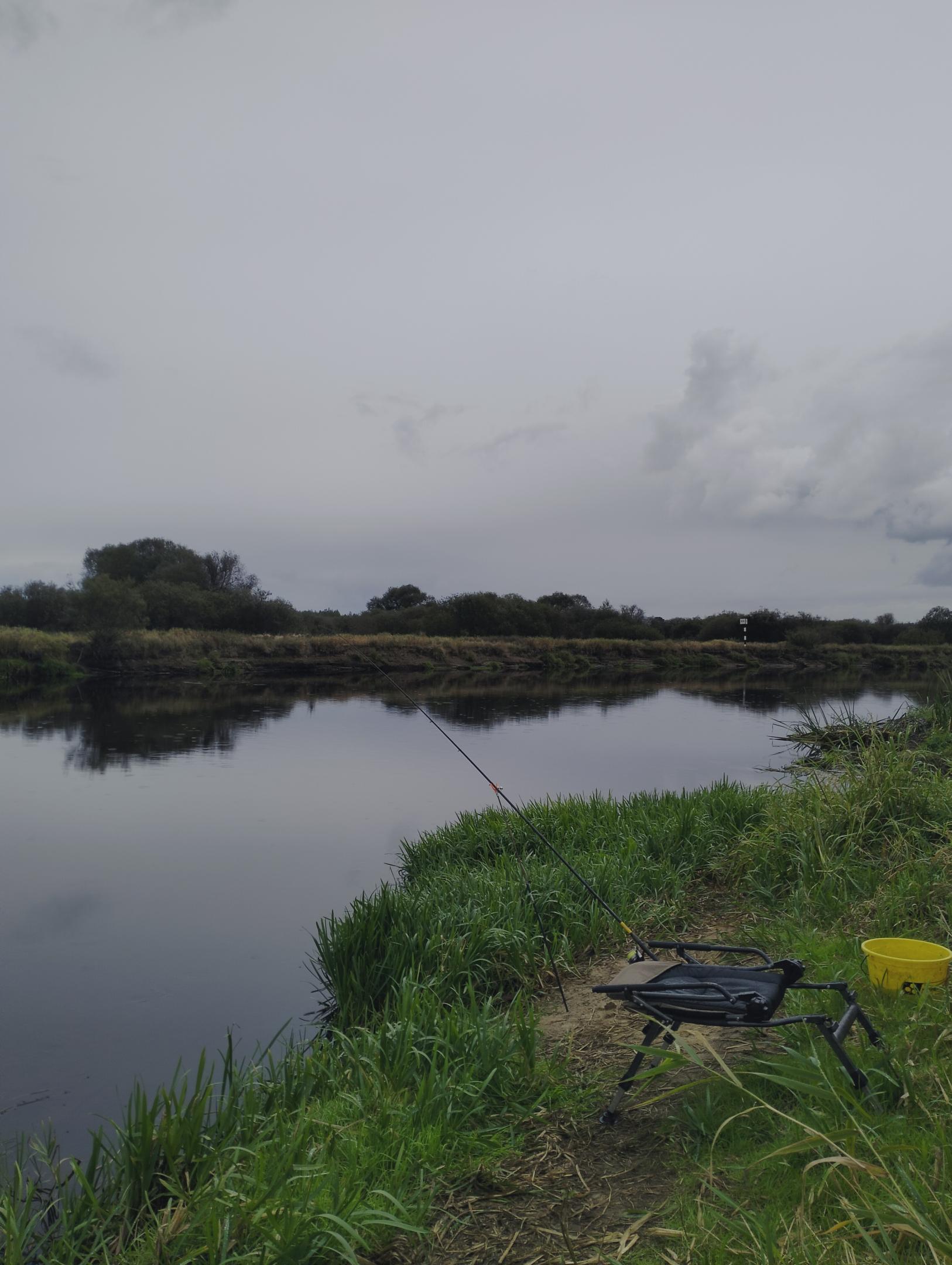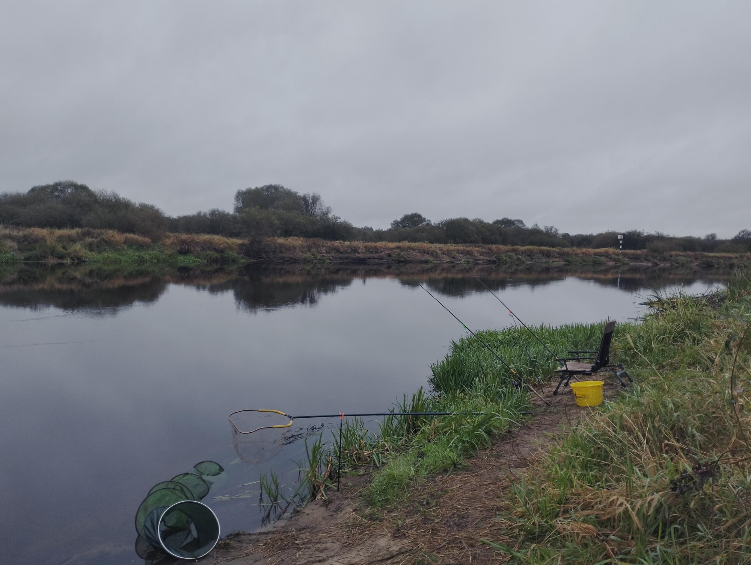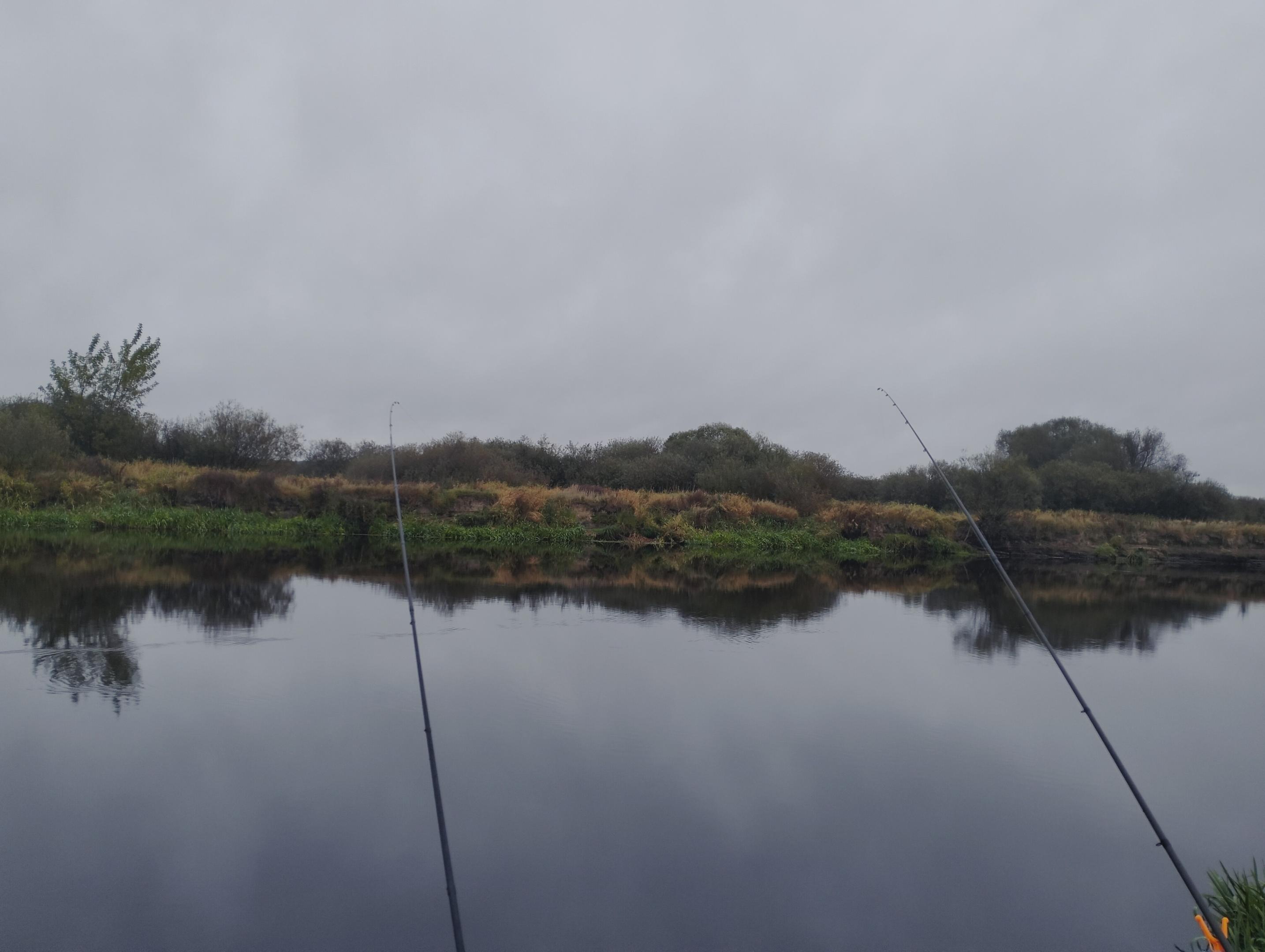 Приземлился в районе Красной Зорьки. На прогонистом участке реки меж двух ям. Глубина практически по всей реке до 2 метров, и только под противоположным берегом проходила русловая канава шириной метров 7 с глубинами до 3 - 3.5 метров. Заклипсовал основную палку в русле, запасной решил ловить на комфортной дистанции на 1.5 метрах.