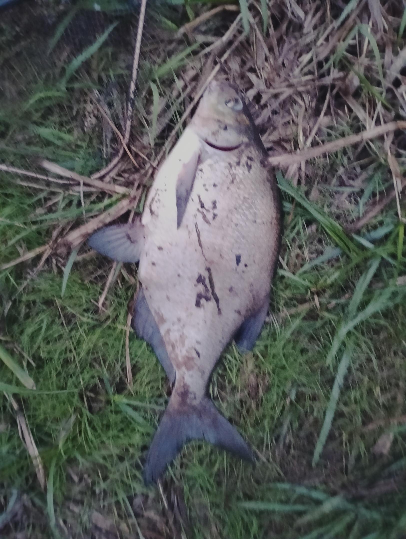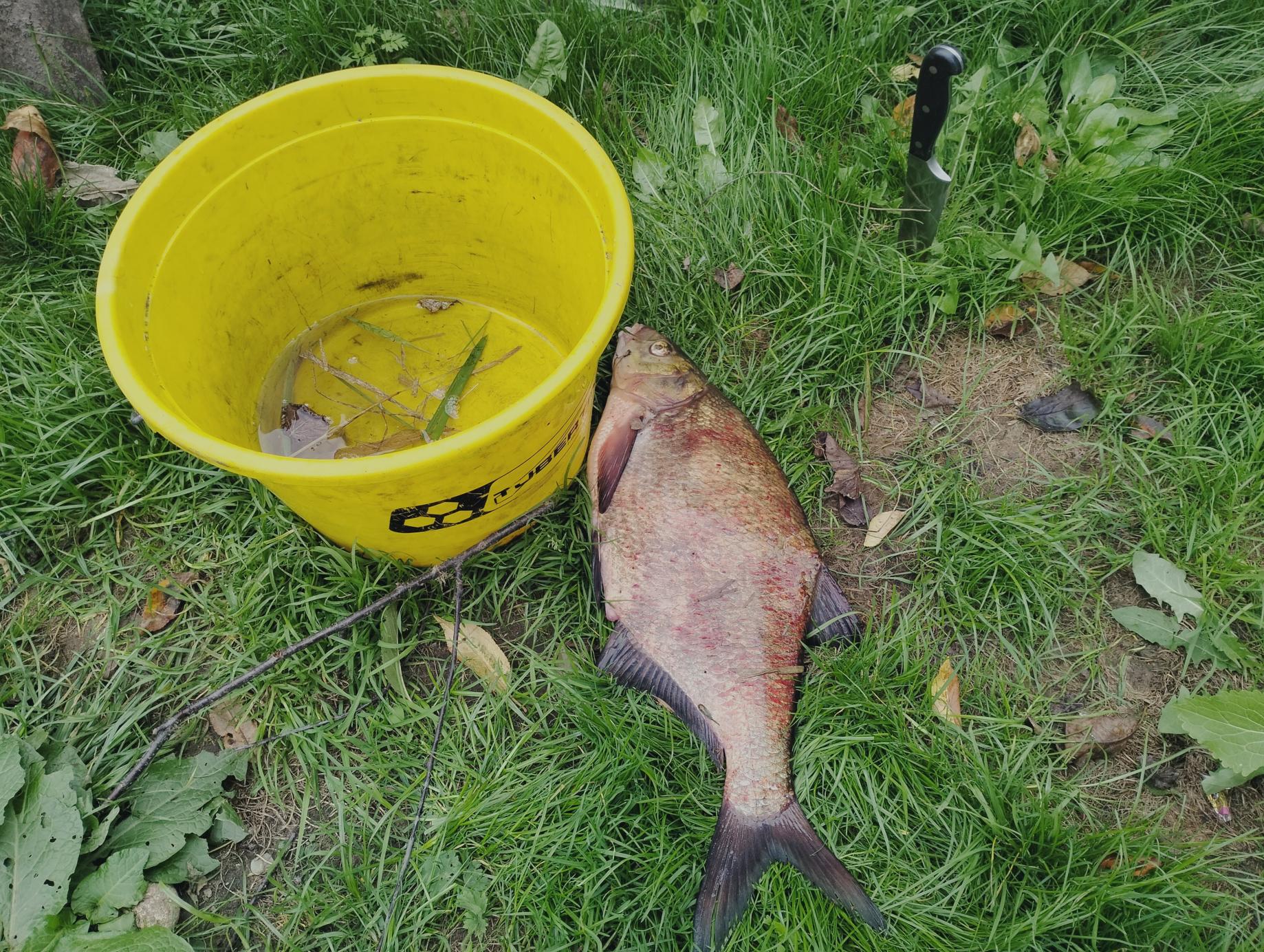 Леща взвесил дома. Чуть перевалил за 2.6кг. Когда-то умудрился нажраться пшена и зелёного печива. Видимо, пасся на этих сотках с вечера, а вот на поклёвку созрел только утром.