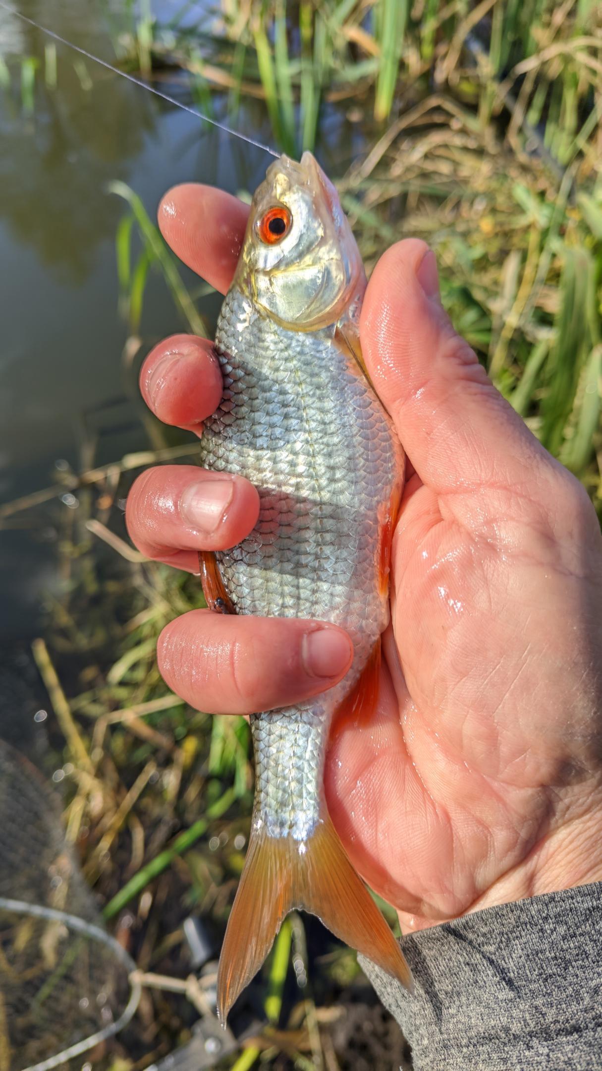 Мах 6 м, поплавок 2 гр, поводок 0.085, крючок 16, корм РС Крупная плотва, арома Бисквит, грунт. Ловил на перловку, опарыша, макароны.