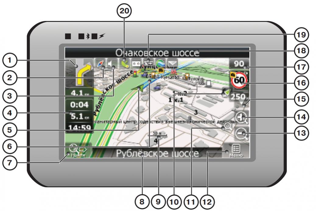 Вашего местоположения. Короткое нажатие на нее возвращает карту к