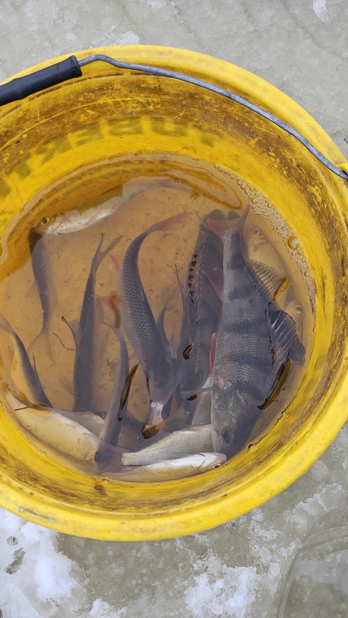 Мелочь же клюет хорошо, до 10 штук из одной лунки, но такая ловля удовольствие не доставляет уже.