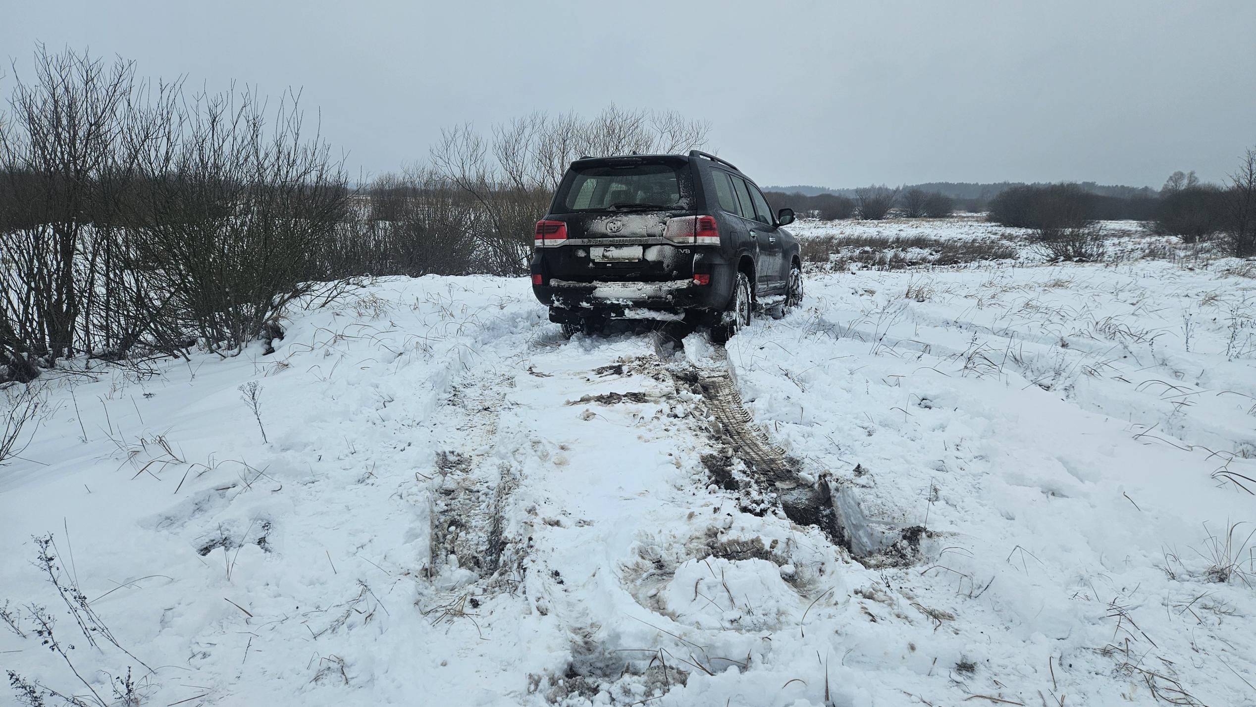 В 08-30 экспедиционный кукурузер свернул с трассы Житковичи-Петриков на заснеженную, девственно-чистую полевую дорогу, и безжалостно начал прорезать колёсами наметенные ночью свежие сугробы.