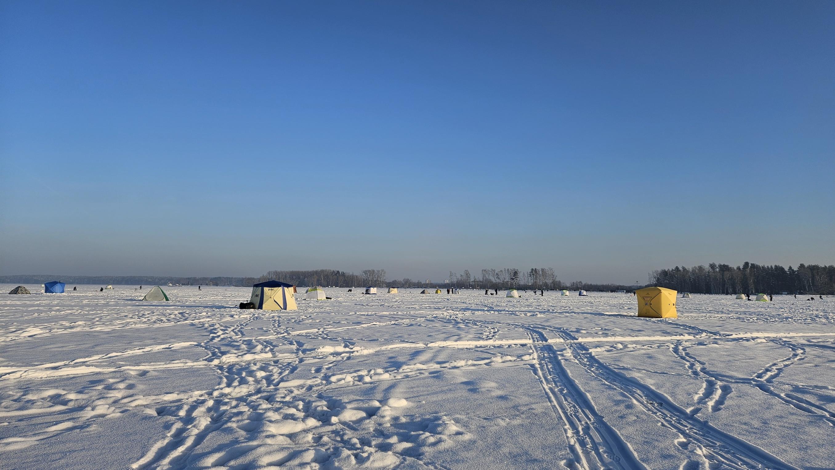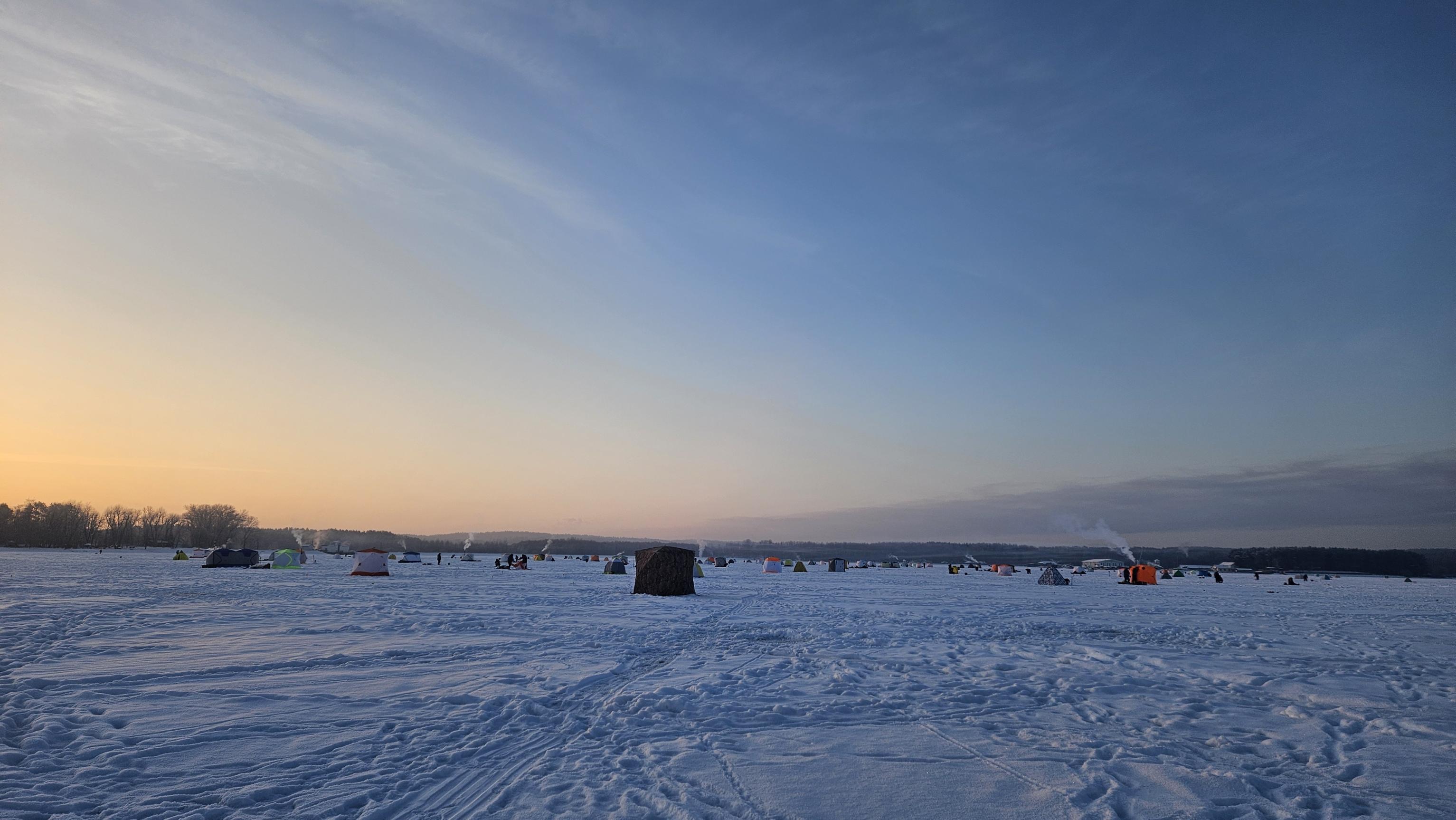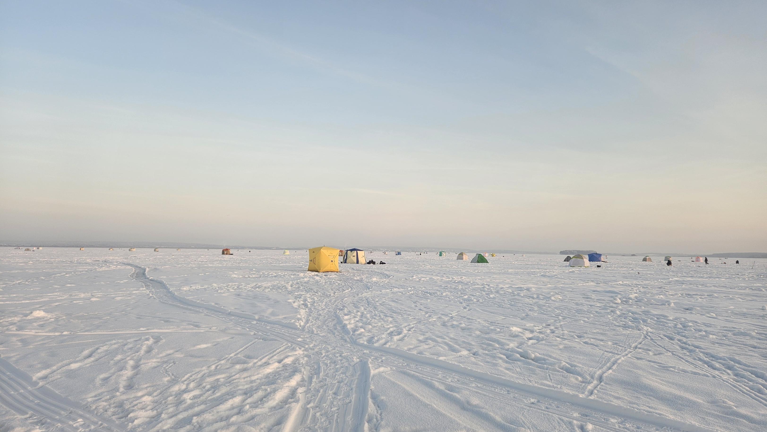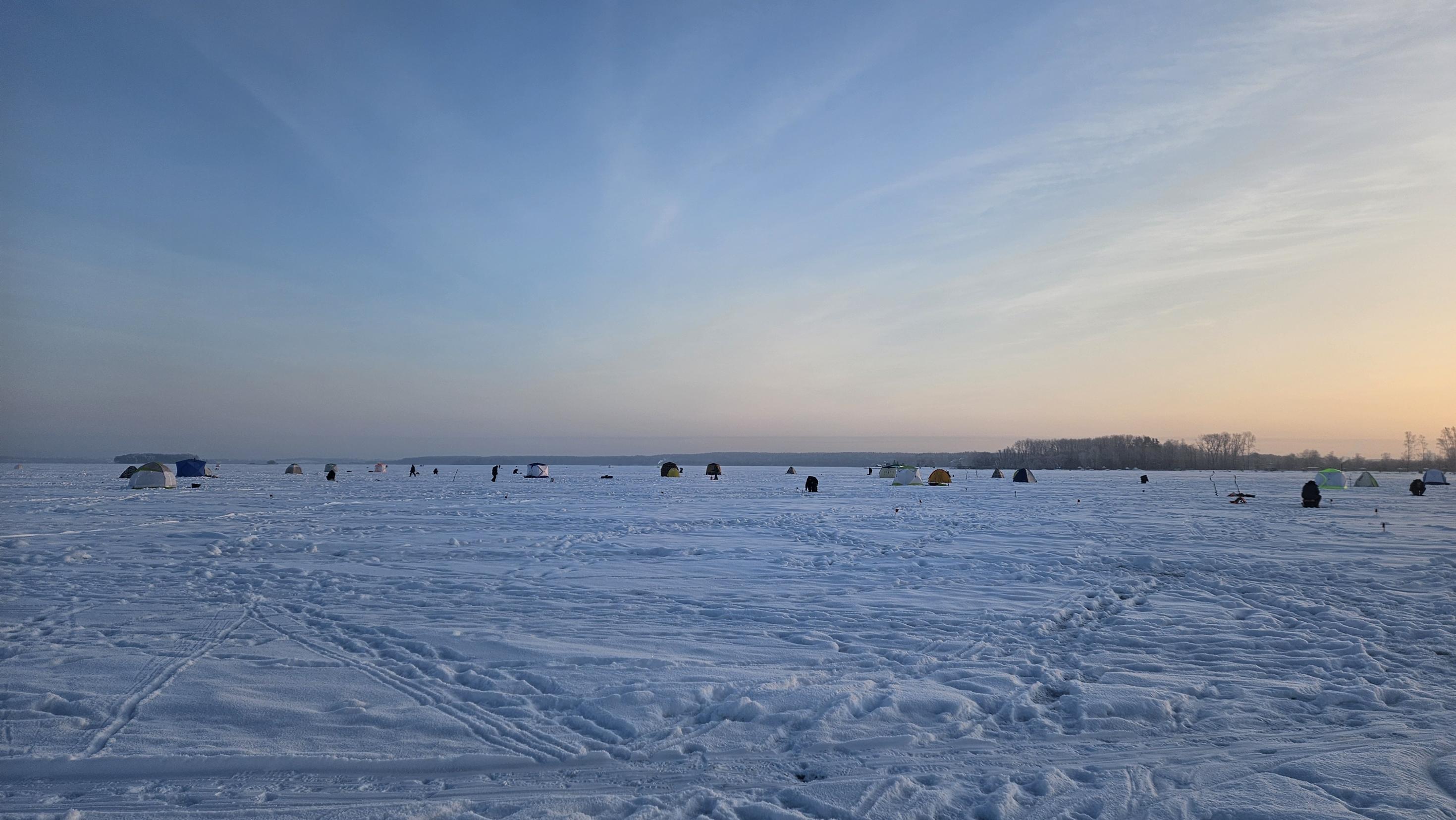 приехали первыми, заняли место, поставили палатки. Закормился со старта два шара прикормки с лиманным мотылем и опарышем на каждую лунку, лунок сделал 3 штуки в палатке.