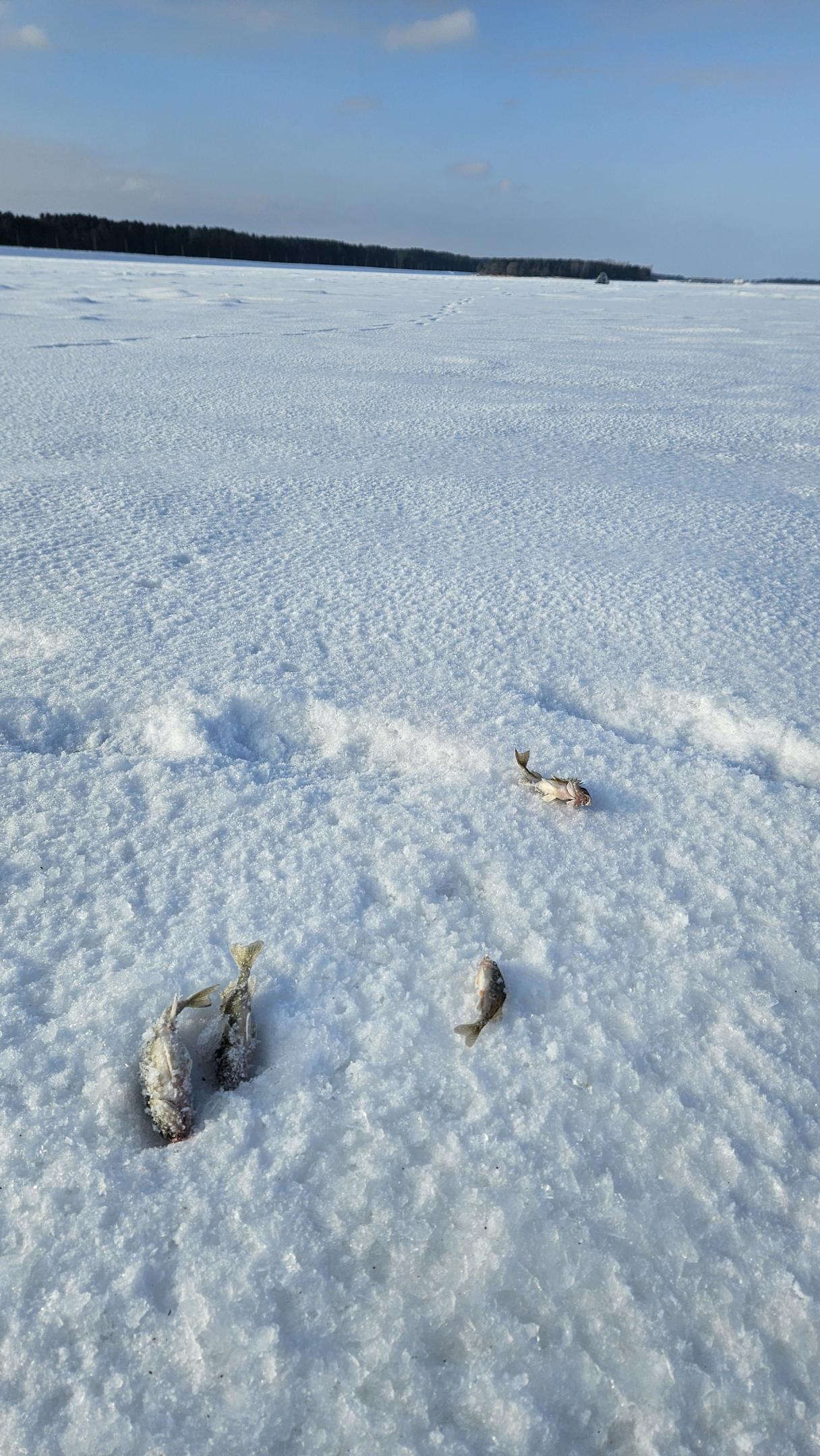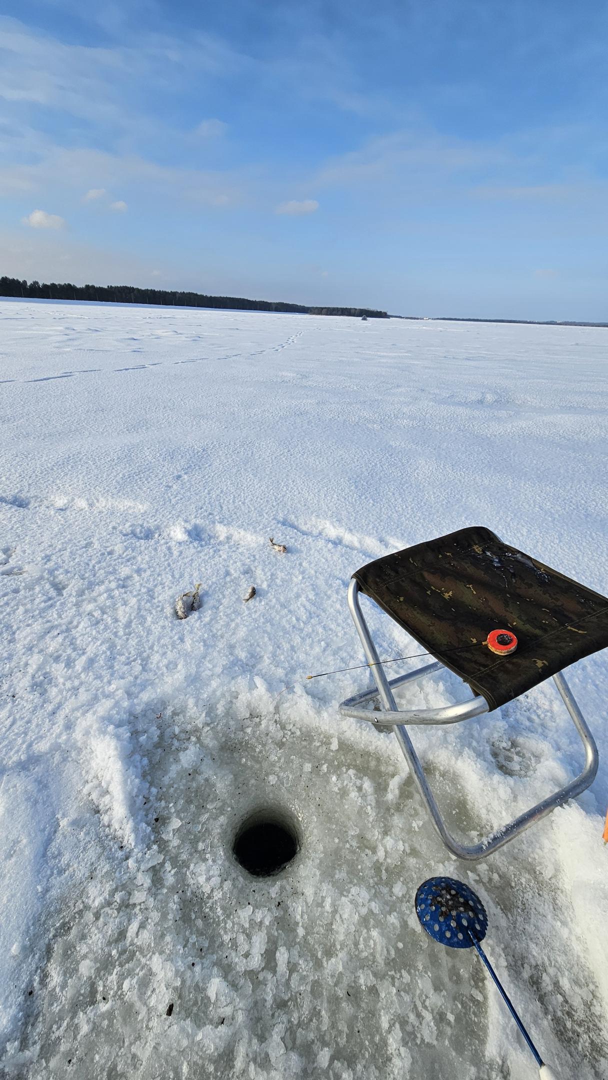 Закормились. Я пробил 12 лунок, Нормунд с десяток. Палатку не ставил, хотя было прохладно, поддувал свежий, морозный ветерок.