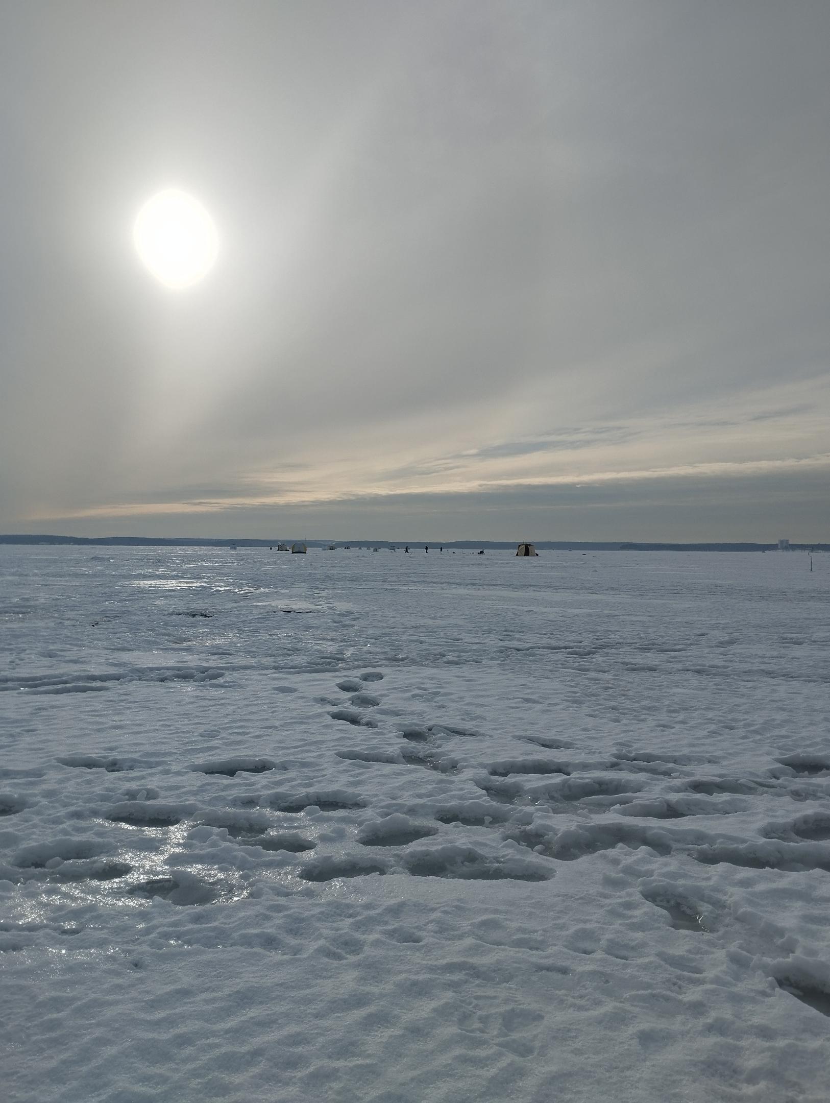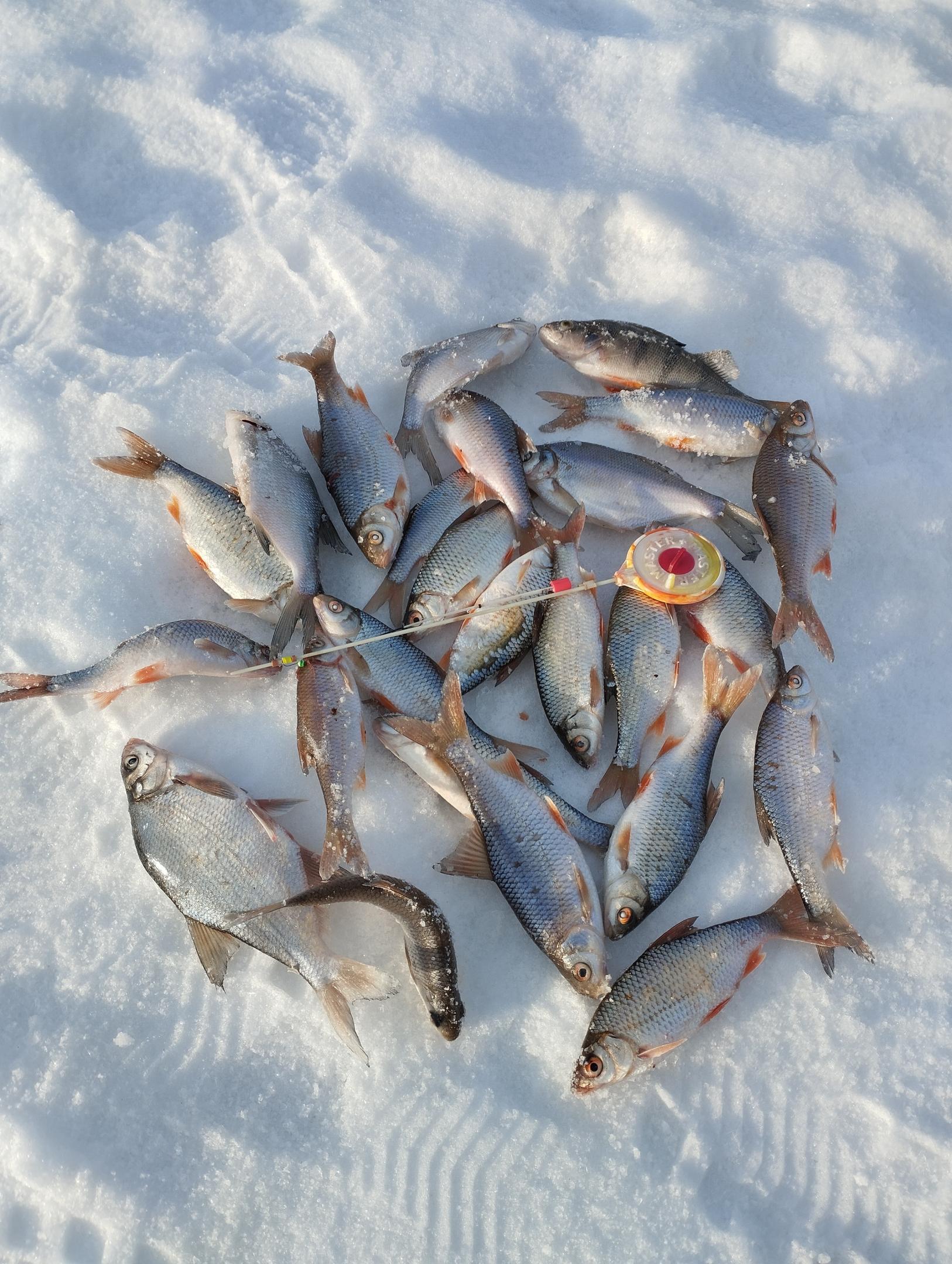 Сегодня посетил ММ, расположился за островами. Ловил на кивок, мормышка - мотыль. К 10 закормил 6 лунок на расстоянии метров 15 друг от друга, глубина везде была ровная, около 5,4 м. Прошел первый круг - 0 поклёвок. На втором круге влетел грамм на 150 окушок, сразу и плотвичка небольшая. В дальнейшем клёв был очень слабый, по одной поклёвке в лунке, не больше. С утра поклёвки были чаще на игру. После 12 на игру практически не клевало, все поклёвки были на стоячую мормышку, при этом поклёвки приходилось ждать долговато. Подходил сосед с камерой, посмотрели мои лунки в камеру, под лунками шныряла плотва, в количестве, на корм не останавливалась, проплывала мимо, хотя в прикорме присутствовал лиманник. В отличии от Вячи, Дроздов, Криницы плотва на ММ клюет более крупная. В итоге словил два десятка плотвы и 4 небольших подлещика. Рыбаков в акватории было достаточно много, но и мест хватало. Ловить было достаточно комфортно, без ветра и мороз не очень сильный. Нажмите на изображение для увеличения.