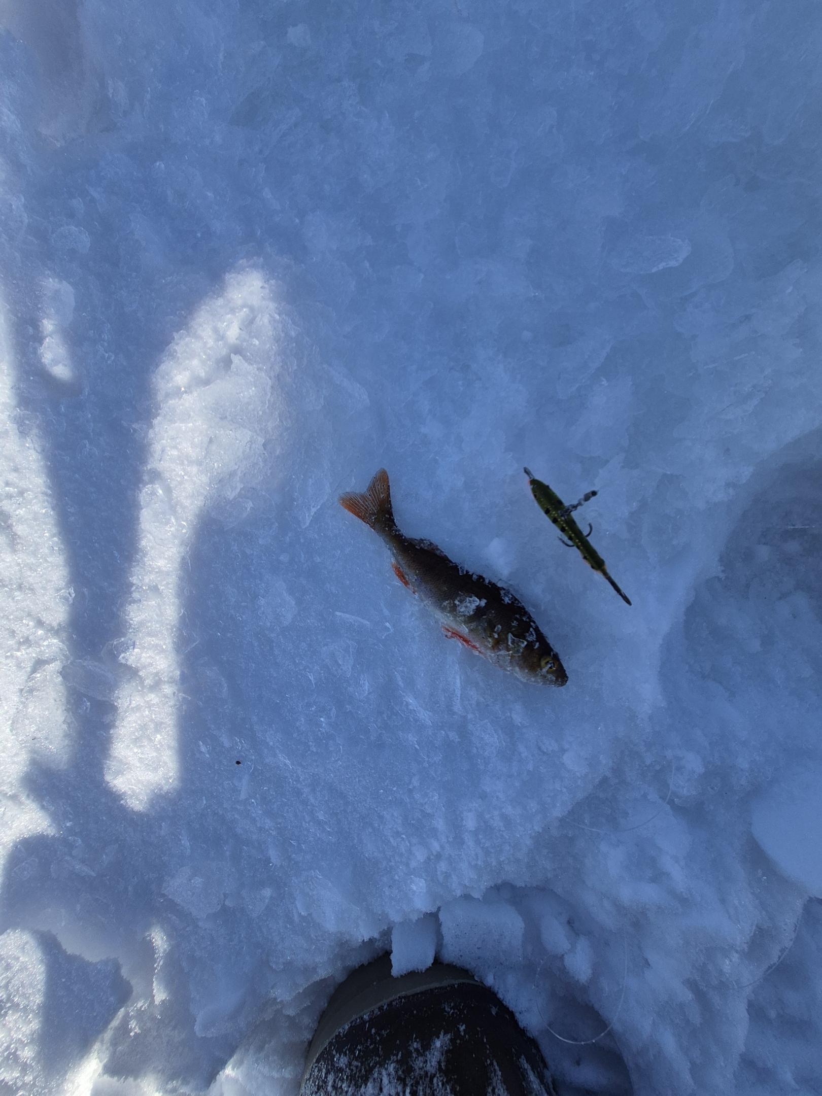 Сегодня после 12ч погодка поменялось, рыб еще сильнее в стрессе...первый час не поклевки ни на что, сегодня начал на балансир, потом и блесна и балда, по итогу блесна вышла победителем. Либо был выход после 14ч, либо просто нашёл окунька, одного съедобного все таки вырвал, 320г завесил, весь в пиявка, качал лунку пару минут, раздразнил его... рядом в лунках были поклевки, одного хорошего не просек, сошёл. Так что окунь на месте, просто попробуй его соблазнить чем то))). Время .балансира неверное прошло, сейчас подавай ему блесенку или вот черта наверное надо пробовать, теплее стало, руки уже так не мерзнут, буду пробовать.. Всем добра!