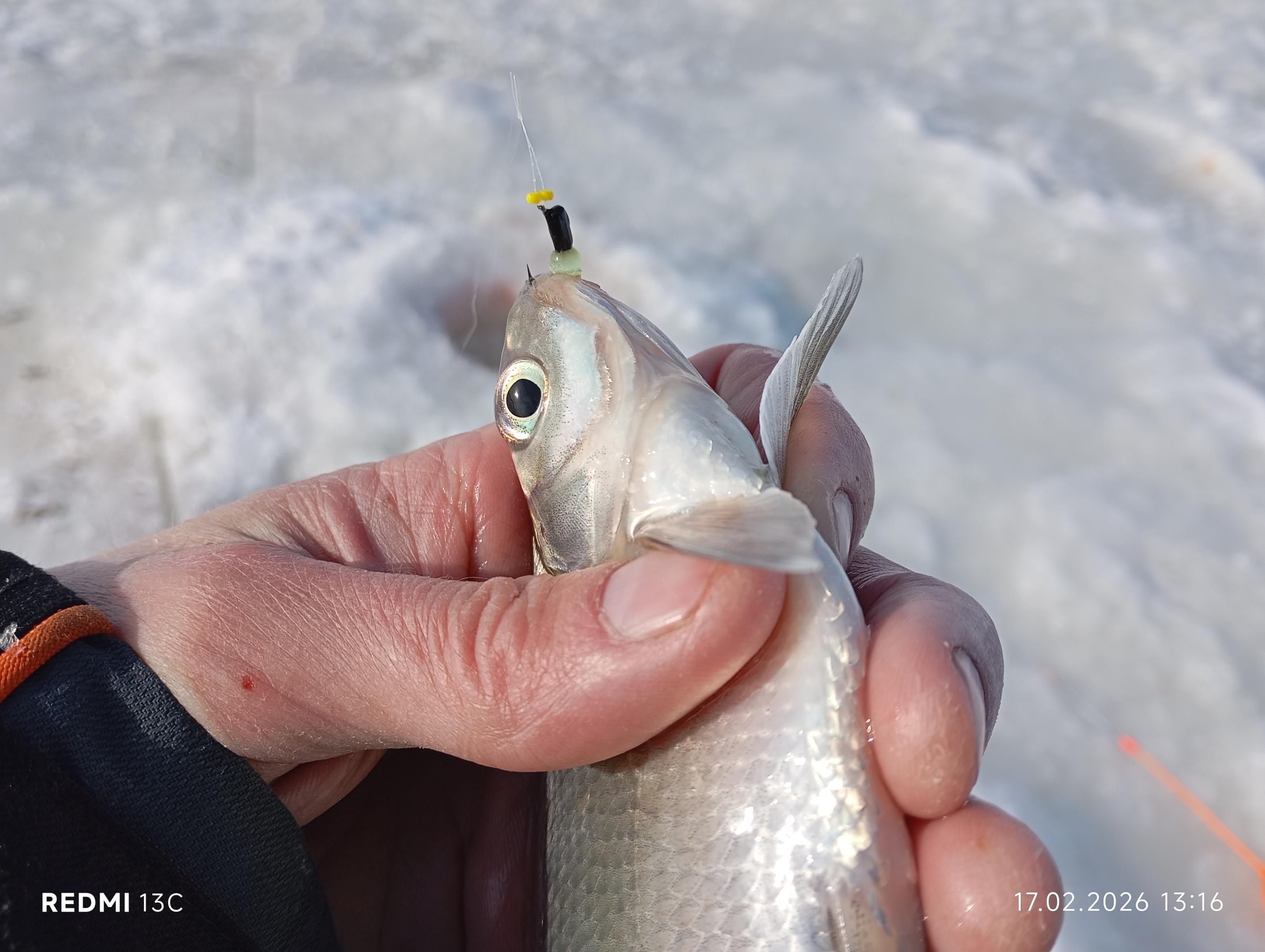 На мой взгляд, шуршание и мелькание цветного яркого бисера хоть как-то активизировало невероятно прида́вленную скорее что кислородным глухозимным голоданием рыбу, и провоцировало её на редкие и робкие поклёвки.