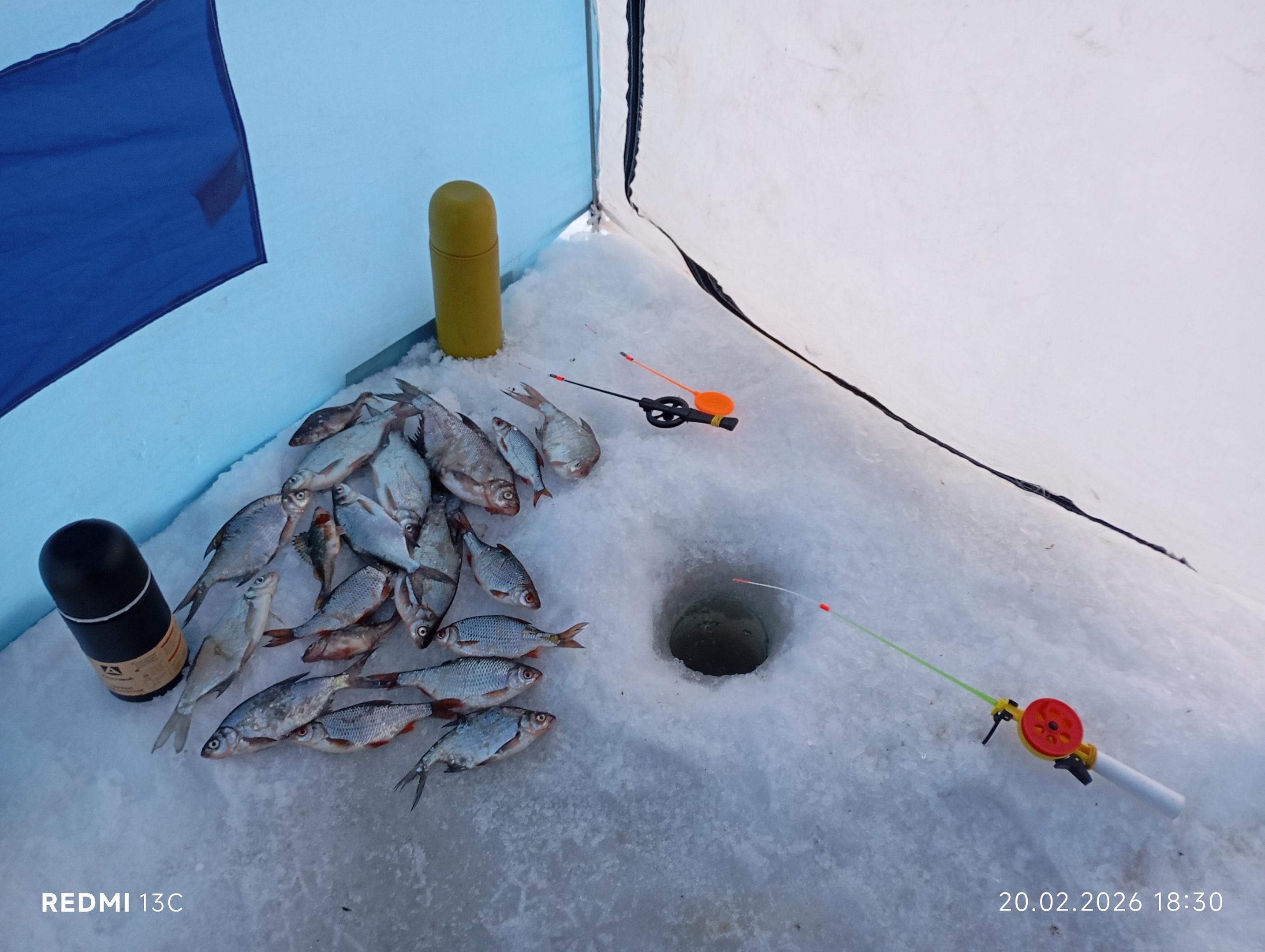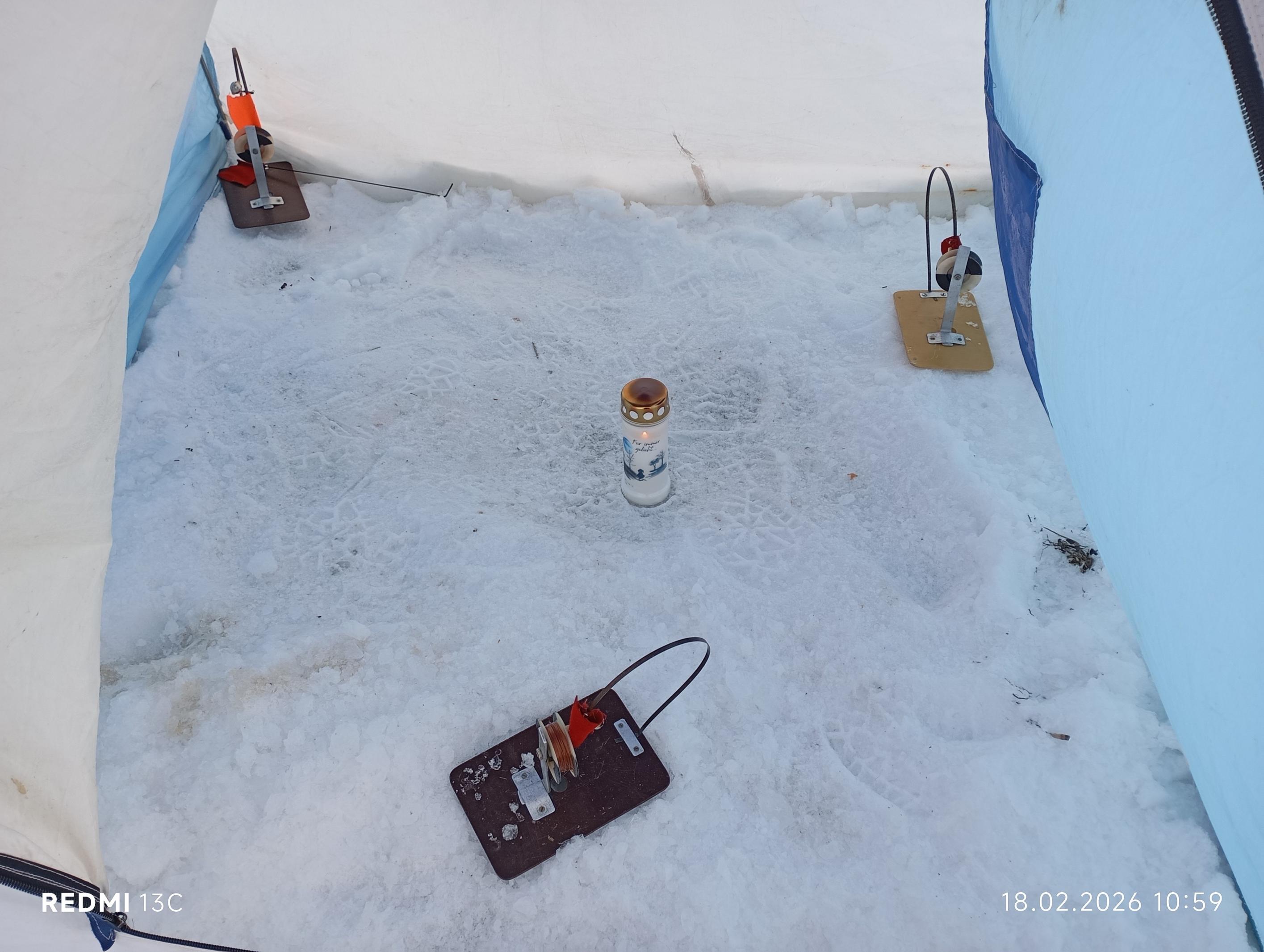В палатке хорошо так закормил две лунки, лиманником и прикормкой-ГПС-ом, и бузы ещё вдобавок на дно впёр.