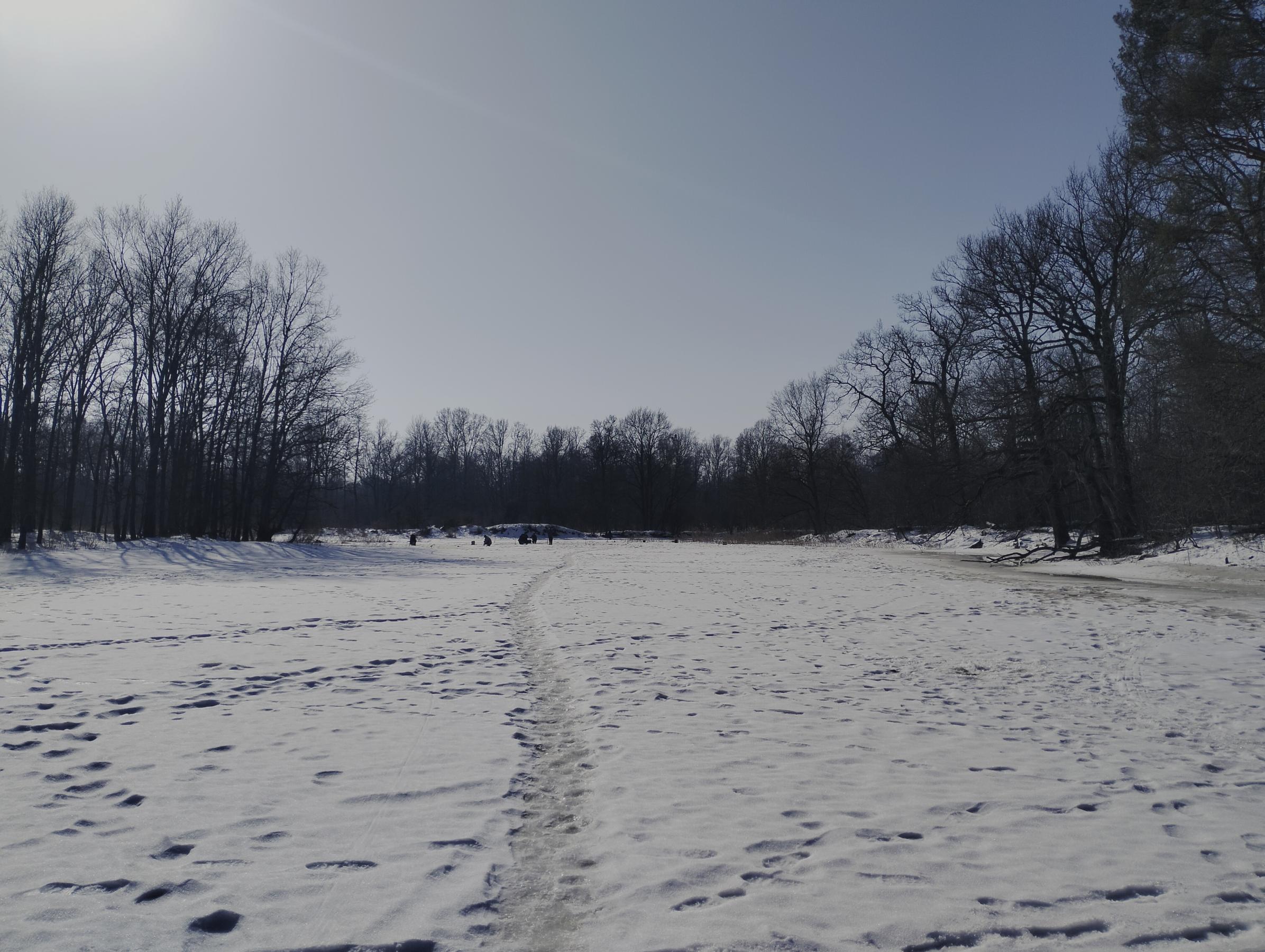 Ловить на базаре не хотелось, сверлился метров на 80 вглубь, где на 3 - 4 метрах исправно осенью-зимой клевала плотва.
