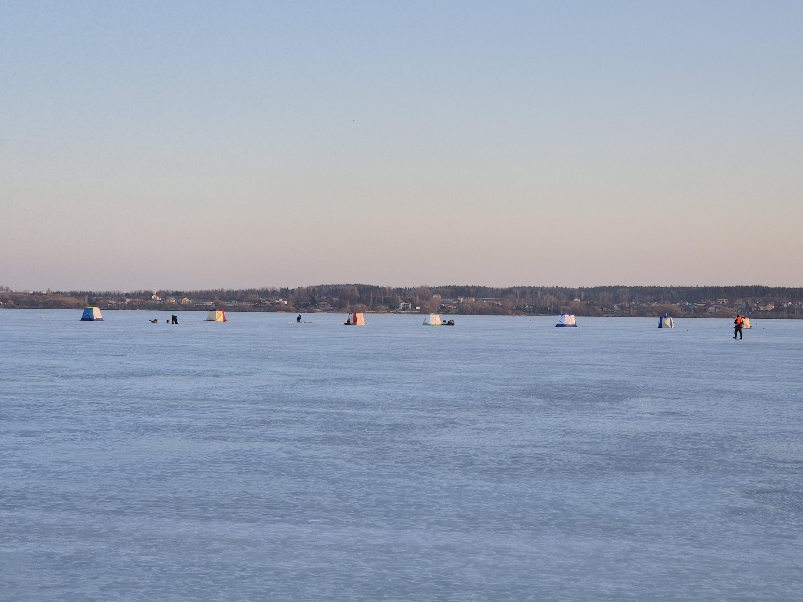 Назад, да, дорога была куда как более энергозатратной. Верхний слой подраскис конкретно, идти тяжеловато было., прямо скажем. И вишенка на торте - с берега на всех нас, рыбачков, мокрых, усталых, с языком на плече, в шмотках, с неподъёмными санками, смотрит толпа шашлычников, велосипедистов, отдыханцев, одни спортсмены, чесслово, через которых не протолкнуться, ну и думают - во блин, пингвины идут, придурошные, МЧСа на них нет.. Но может и ошибаюсь.. Может ещё хуже думают.. ))