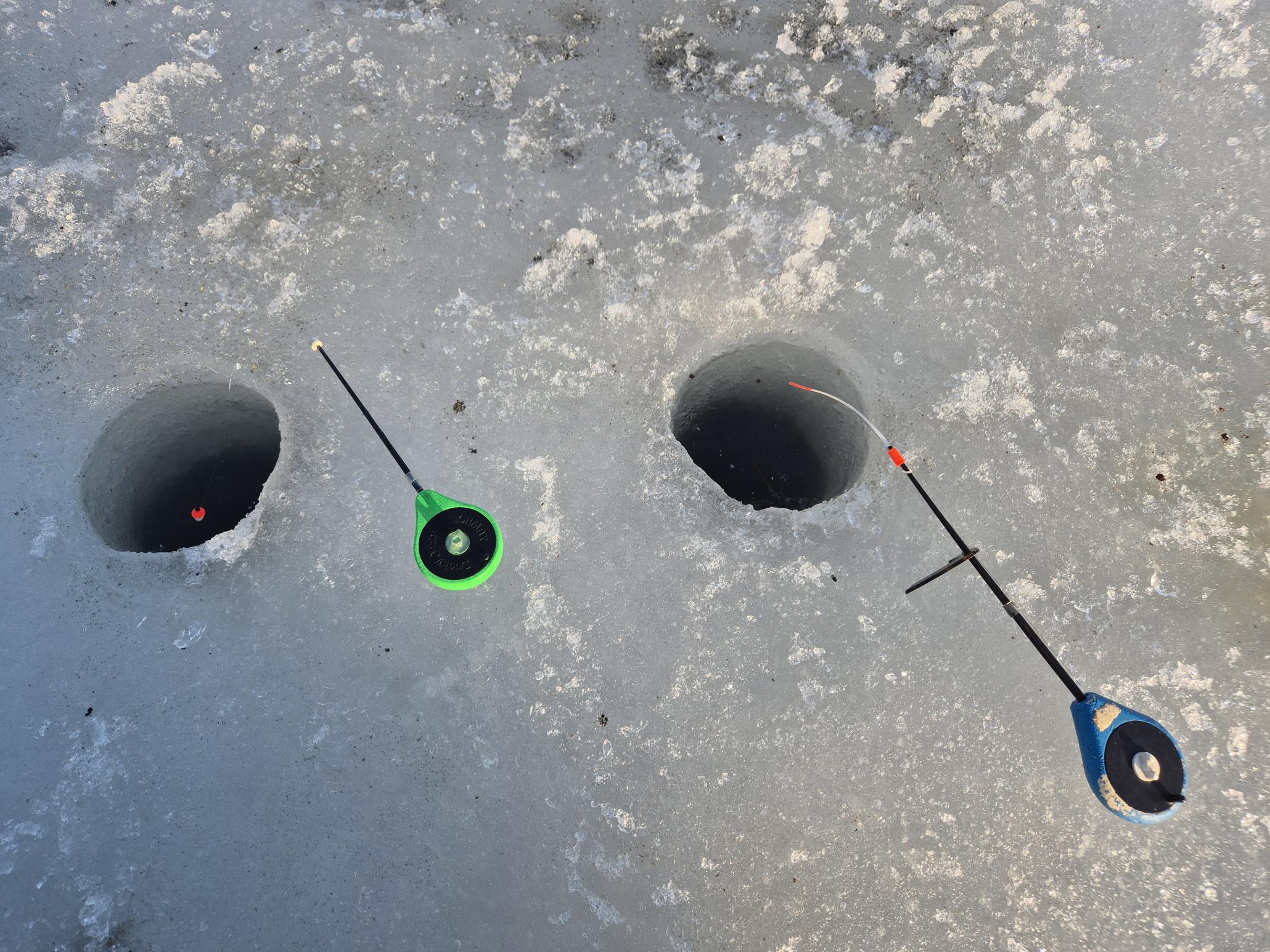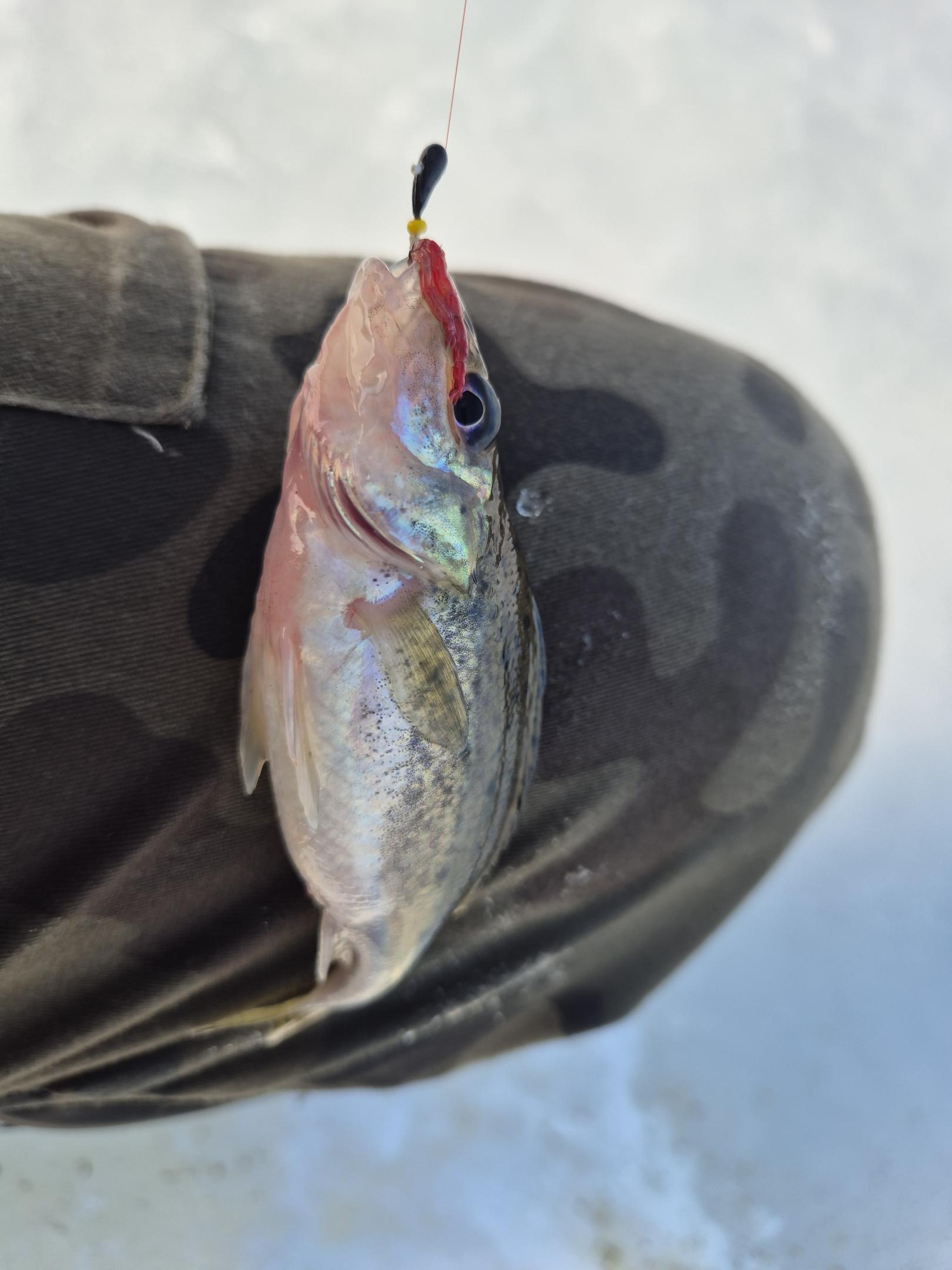 Лёд – стеклоасфальт. Если уж ёб…шься, то максимально зрелищно.. Слава Богу, благополучно добрались до массовки, кстати, совсем малочисленной, пристроились никого не подпирая, чуть в сторонке. Расположились геометрически правильной схемой - две базки по две лунки и по кругу десяток, через равные промежутки. От Iстрабiцеля уже бы прослушал лекцию пра тое, што «У цябе, щто, рыба геаметрыю ведае, цi што?». Закормились ГПСом СЦД. Ждём. «Не клевать стало сразу» (с) Добавлю – как и не сразу. Время было ограничено, в 14 надо было сворачиваться. Юрась и поклёвки не видел, сам ушёл от нуля (читай – закрылся) здоровенной ершихой – красавицей. Вот, который раз говорю, дал бы Бог ершам росту в килограмм-полтора, хотя бы, можете представить рыбу более могущественную и красивую? То-то..