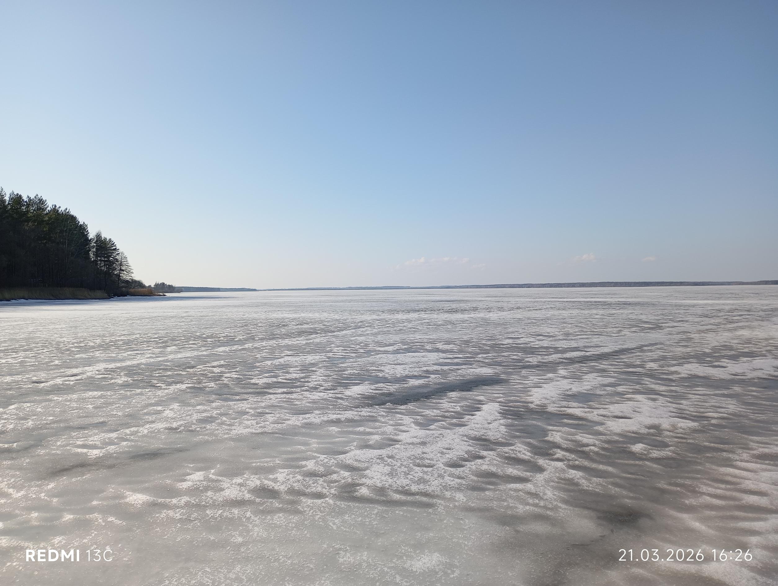 Заход на лёд, - хоть бо́ком кати́сь. Оно и понятно, берег то южный, лес тень создаёт хорошую.