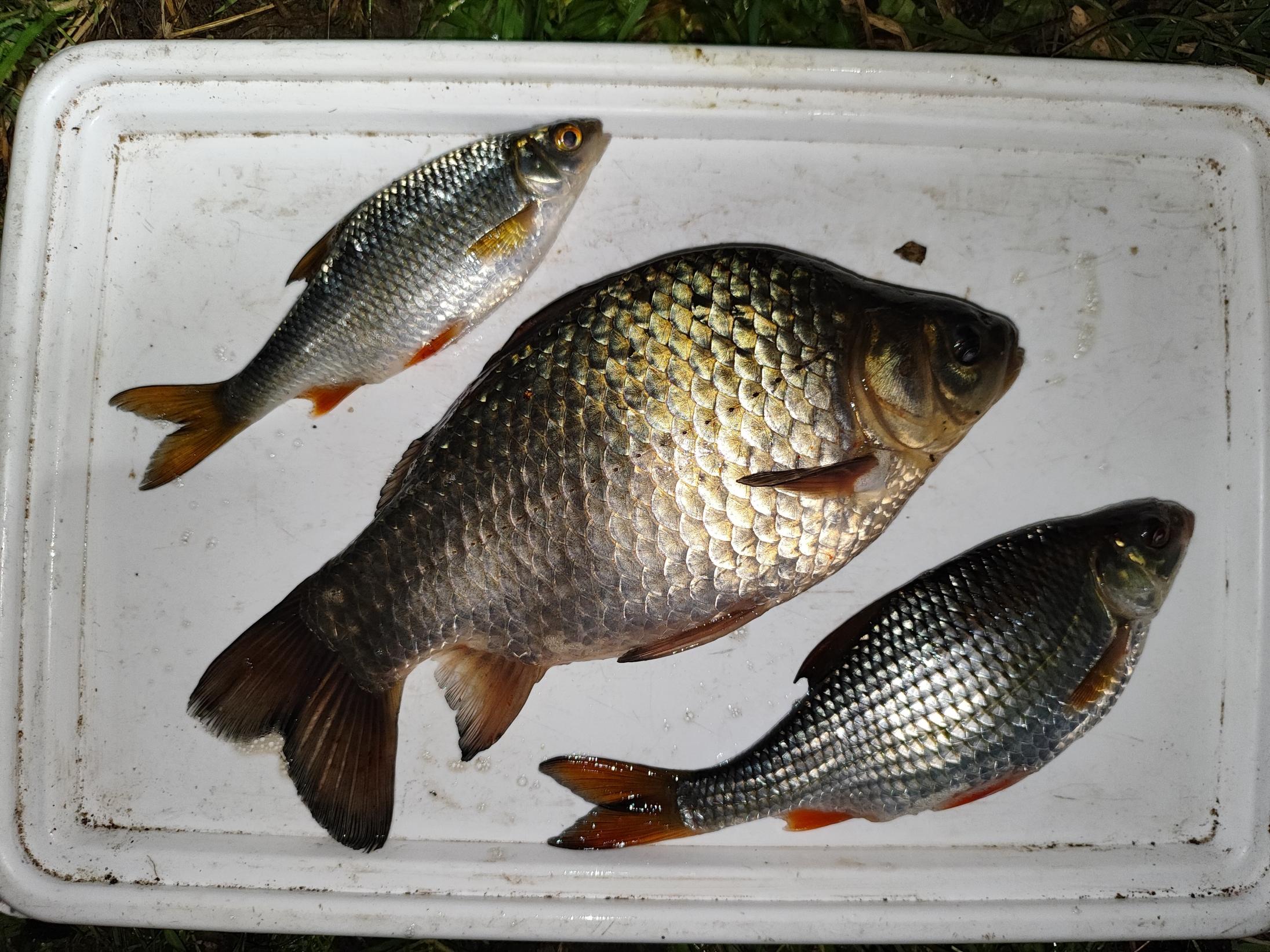 Улов как в прошлый раз, только одна плотка покрупнее и карась покруглее)